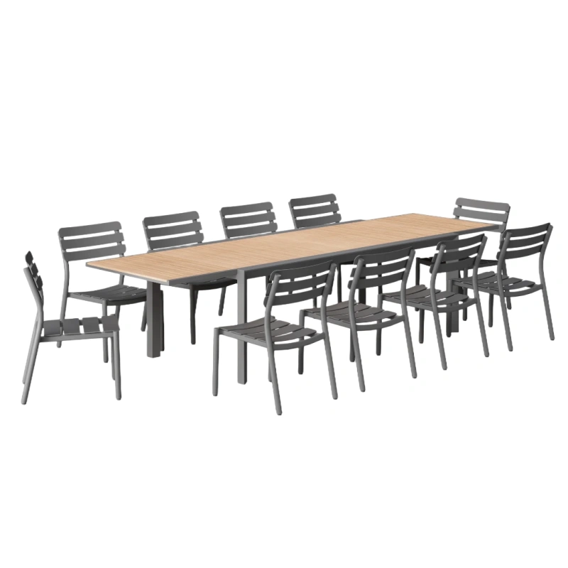 Extendable teak & aluminum outdoor table—durable, weather-resistant, and designed for flexible 8–12 seating.