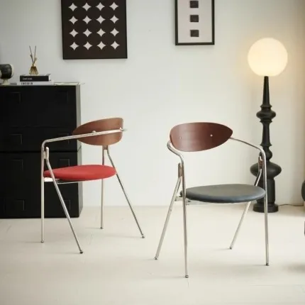 Nordic and Instagram Style Dining Chair for Dining Room, Metal Iron Frame and Faux Leather, Retro Industrial Design