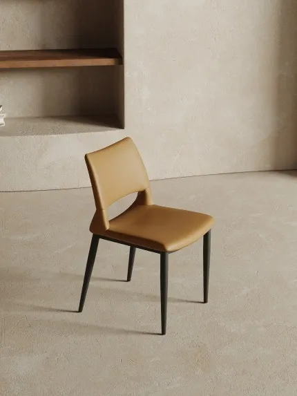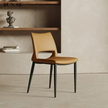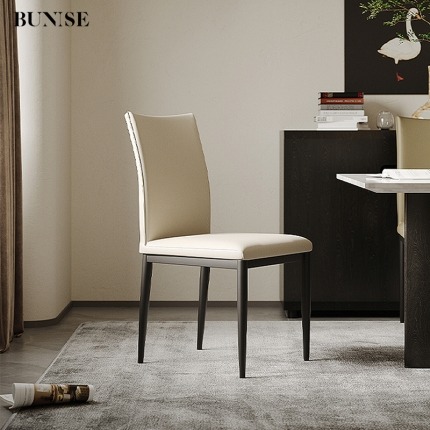 Italian Minimalist Dining Chair, Home Modern Simple Leather Chair, Nordic Elegant Designer Upholstered Backrest Chair, Comfortable for Long Sitting
