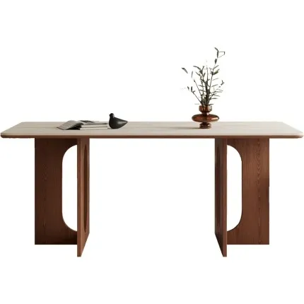 30mm Antibacterial Sintered Stone Dining Table with Reinforced Ash Wood Base: Heat-Resistant & Heavy-Duty Design.
