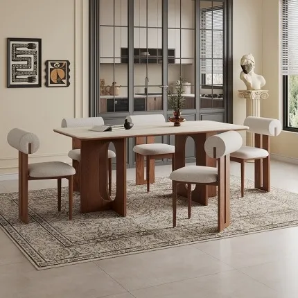 27mm Travertine Sintered Stone Dining Table with FAS Black Walnut Legs: Heat-Resistant, Food-Safe & Space-Saving Design