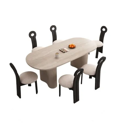 Premium 12mm Travertine Sintered Stone Table with 25mm Solid Wood Support: Heat-Resistant, Durable & Food-Safe.