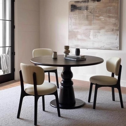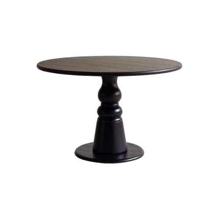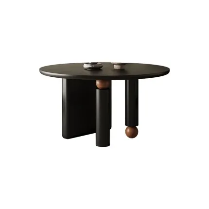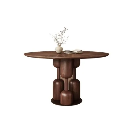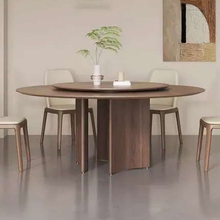 Solid Wood Round Dining Table with Detachable Black Walnut Lazy Susan & Anti-Warping Cold-Press Tech.