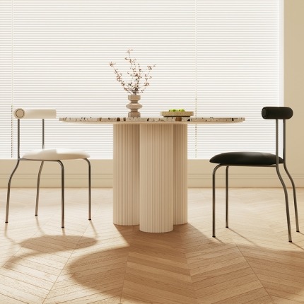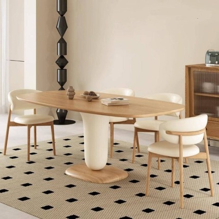Food-Grade Inorganic Terrazzo Tabletop with Ash Wood Legs: Heat-Resistant, Waterproof, and Eco-Friendly for a Safe, Cream-Style Home.