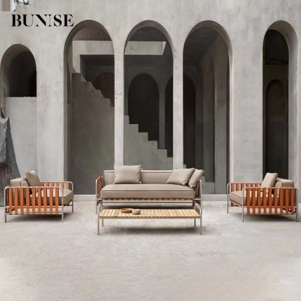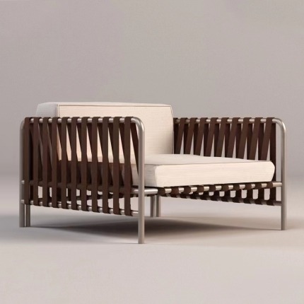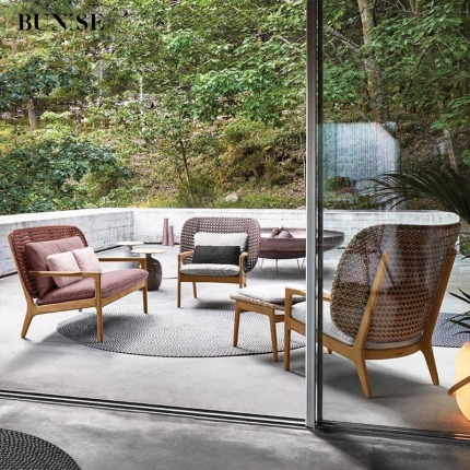 BUNISE Luxury Outdoor Sofa Set P38 - Designer Stainless Steel and Woven Rattan Lounge Chair for Villas, Hotels, and Gardens