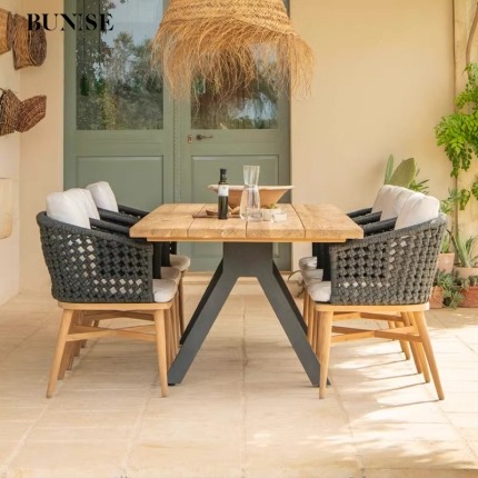 Waterproof UV-Resistant Rope and Rattan Furniture with Coffee Table for Gardens, Balconies, and Villas
