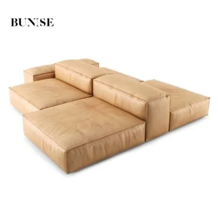Bunise Genuine Leather Sofa, Fine Cowhide, Italian Minimalist Style. Modern Luxury, Vintage Scent, Suitable for Living Rooms and Small Condos