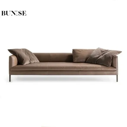 Premium 1.4-2.0mm Nappa Leather Sofa: Multi-Point Spine Support & Elegant High-Leg Design by BUNISE.