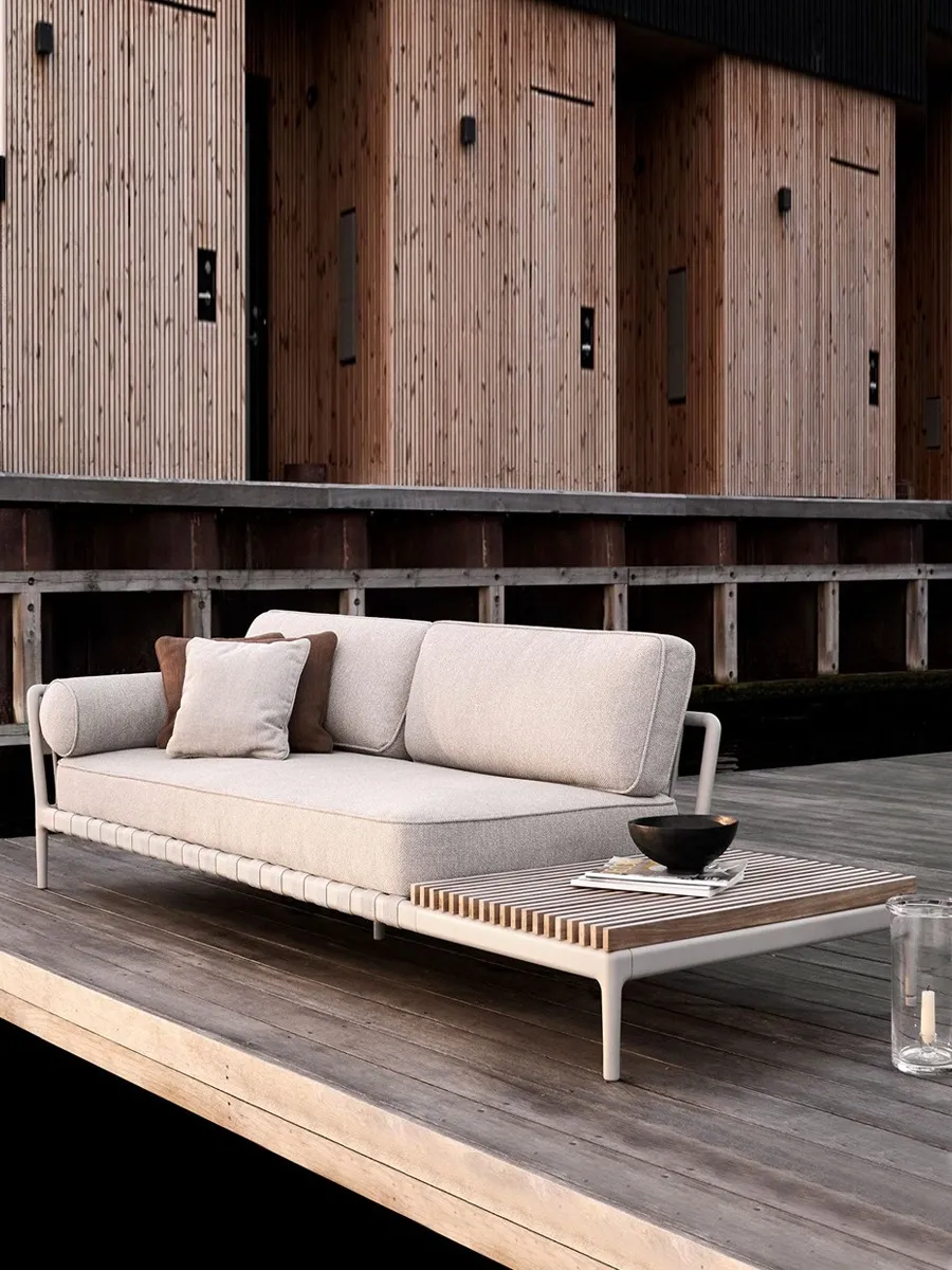 Made from quick-drying cushions and custom-made outdoor fabrics to ensure durability in all outdoor conditions, it features two-way selectable open ends.