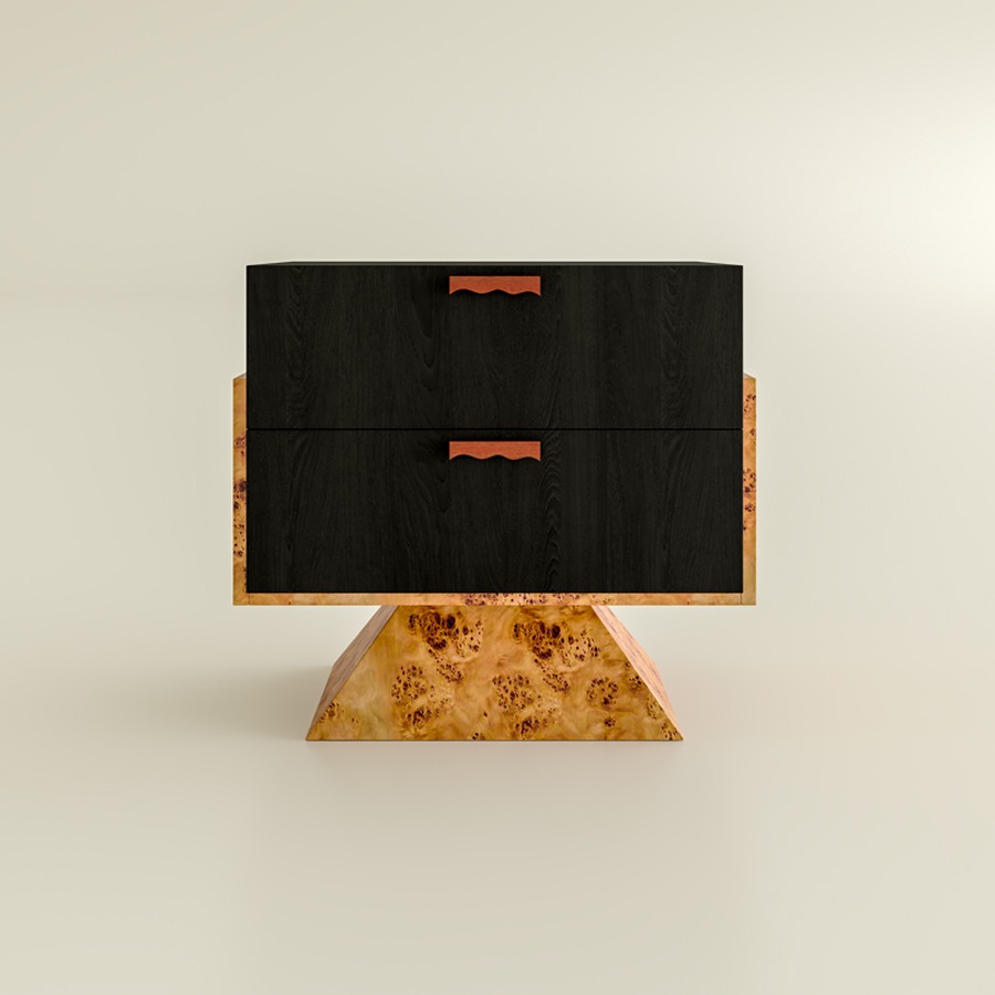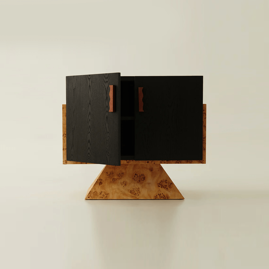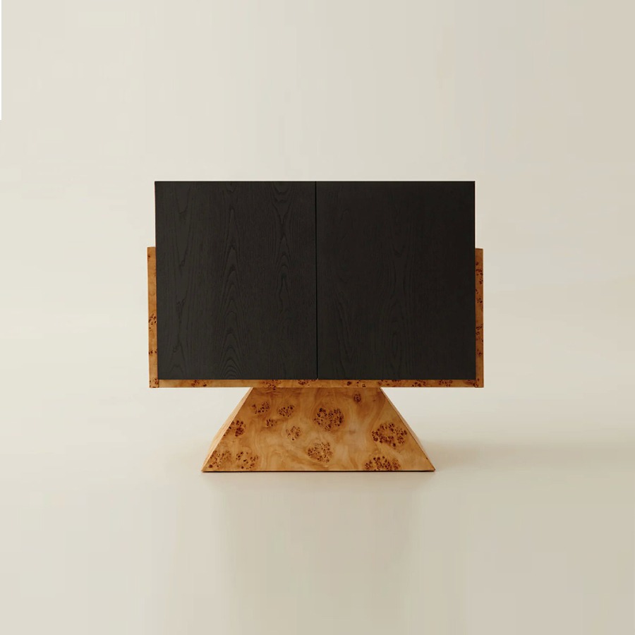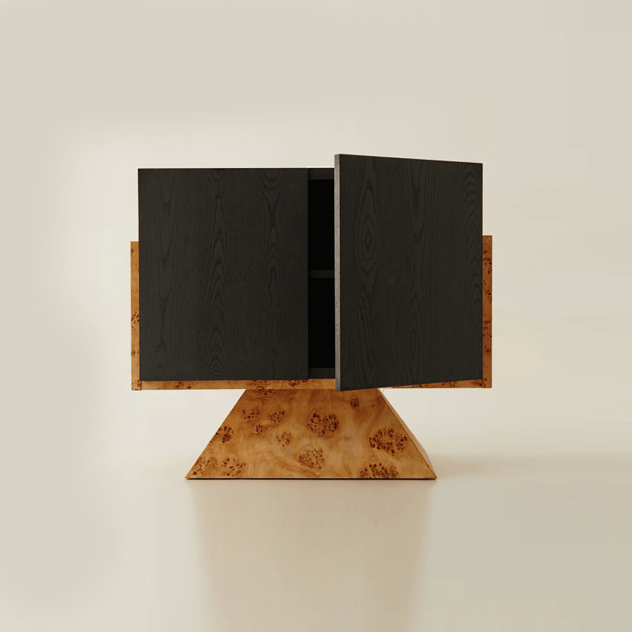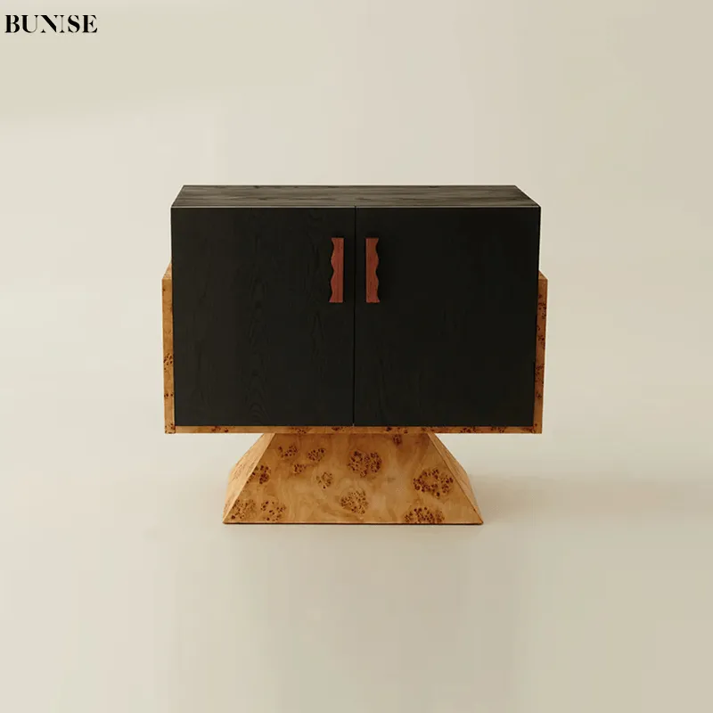 Modern Minimalist Natural Tree Burl Bedside Cabinet Vintage Style Double Door Storage Small Side Table For Bedroom Free Nationwide Delivery