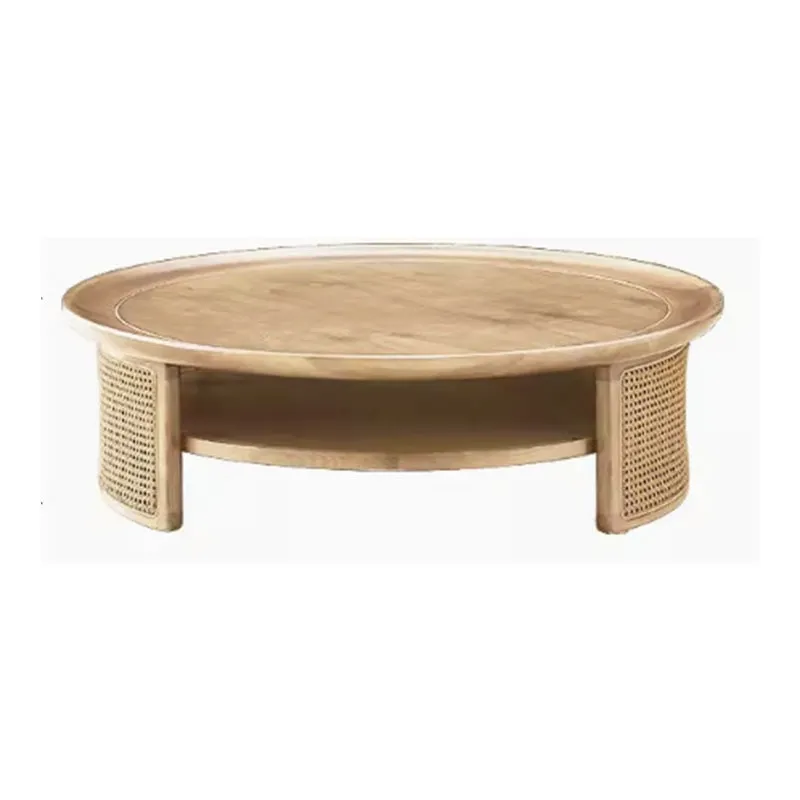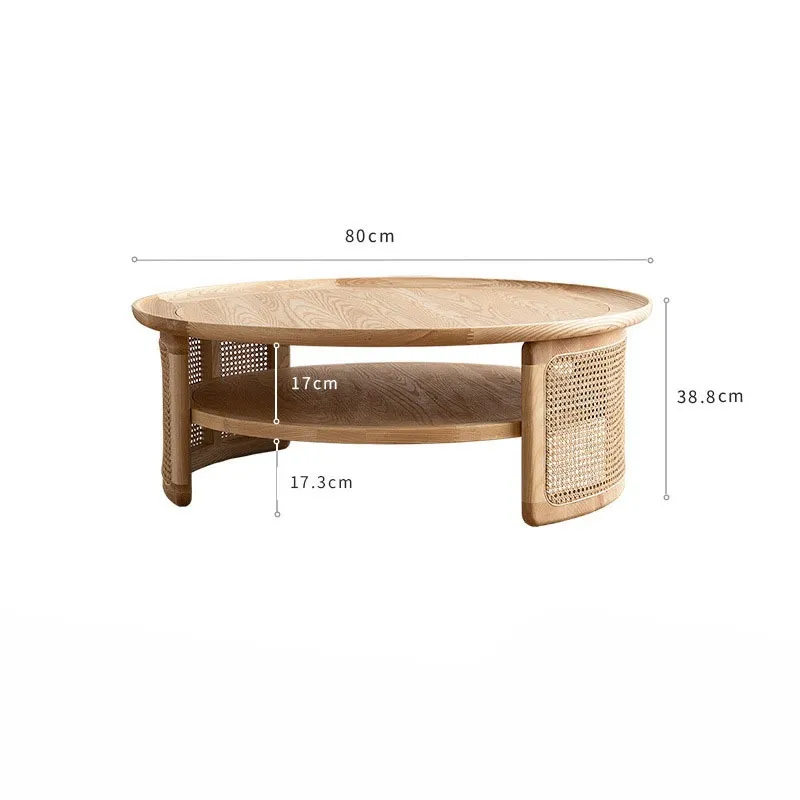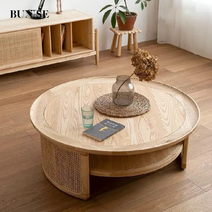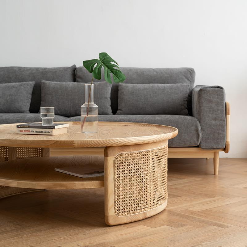 Modern Minimalist Ash Wood & Rattan Low Table for Living Rooms