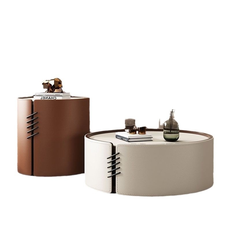 Leather Sofa Side Table, Luxury Style, Movable Design. for the Living Room, Free Shipping Throughout Thailand.