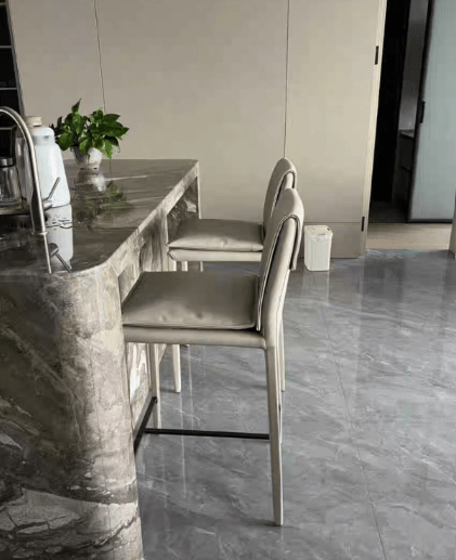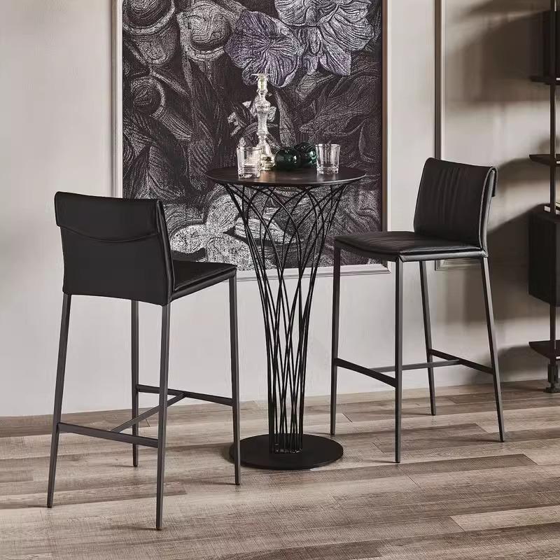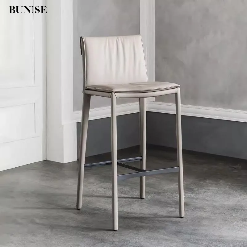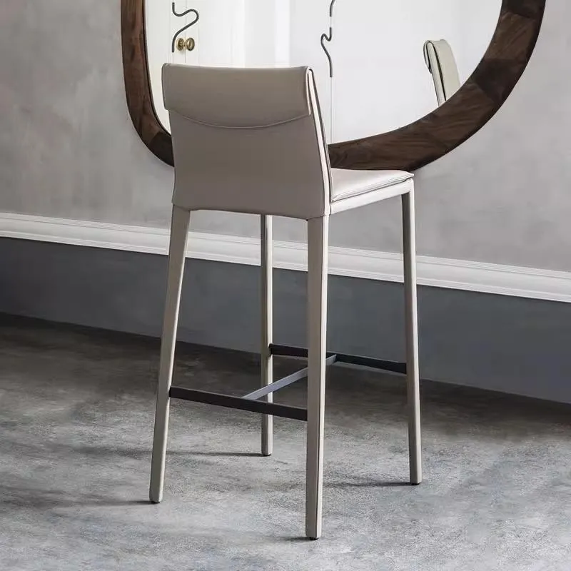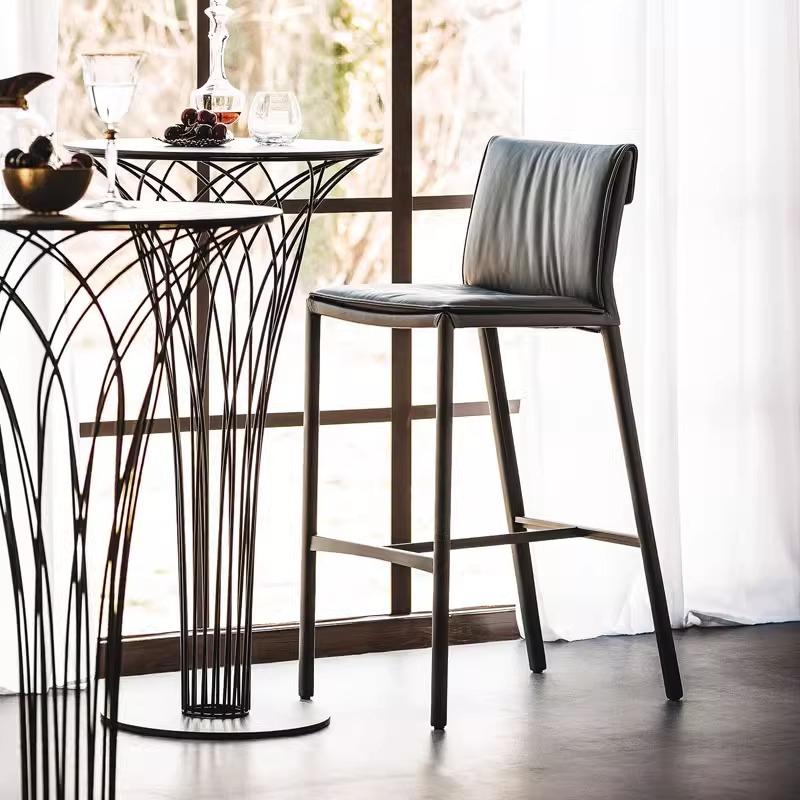 Italian Minimalist Bar Stool – High Footrest Chair with Saddle Leather, Modern Luxury Design for Kitchen Island or Bar Counter