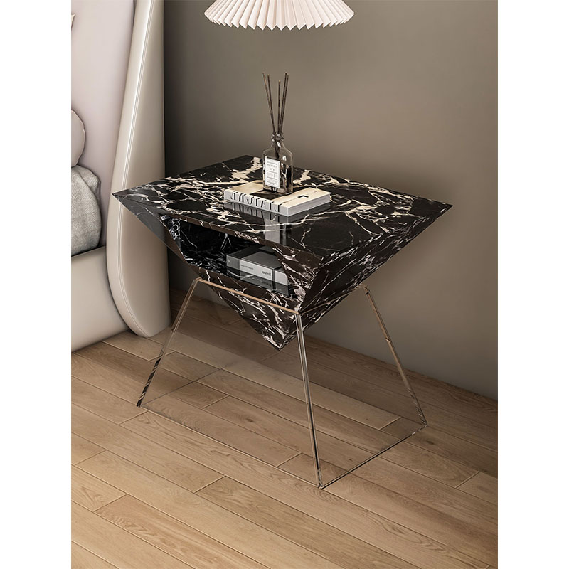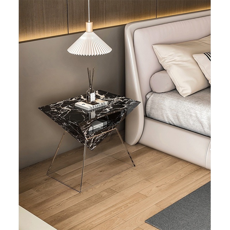 Italian Luxury Bedside Table with Marble Top Solid Wood Lacquer and Glass Modern Design for Bedroom Storage