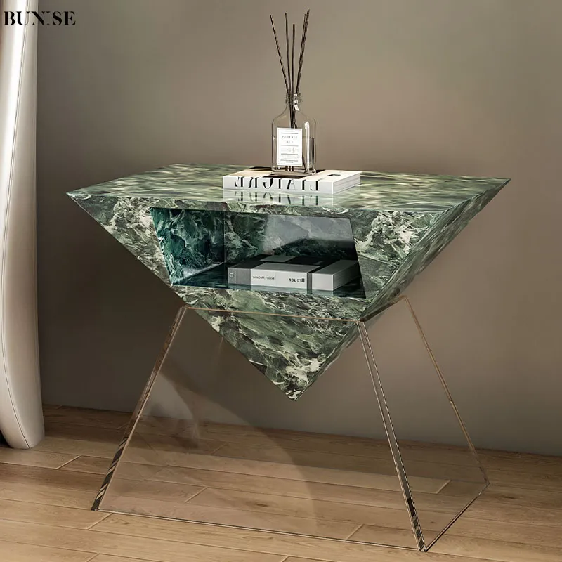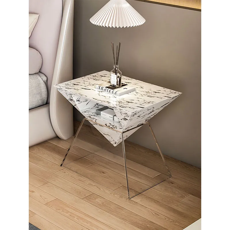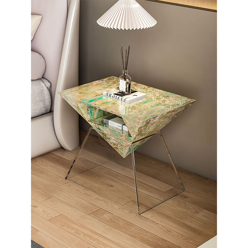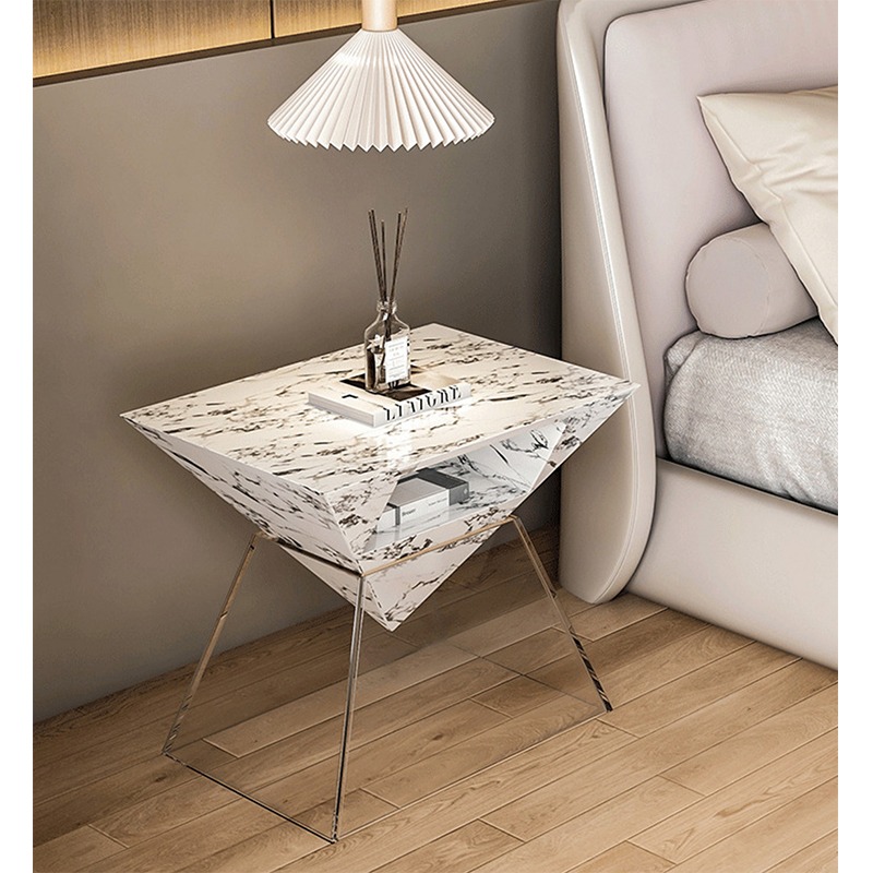 Bedside Table with Natural Marble Italian Luxury Design 2025 New Model for Luxury Bedroom