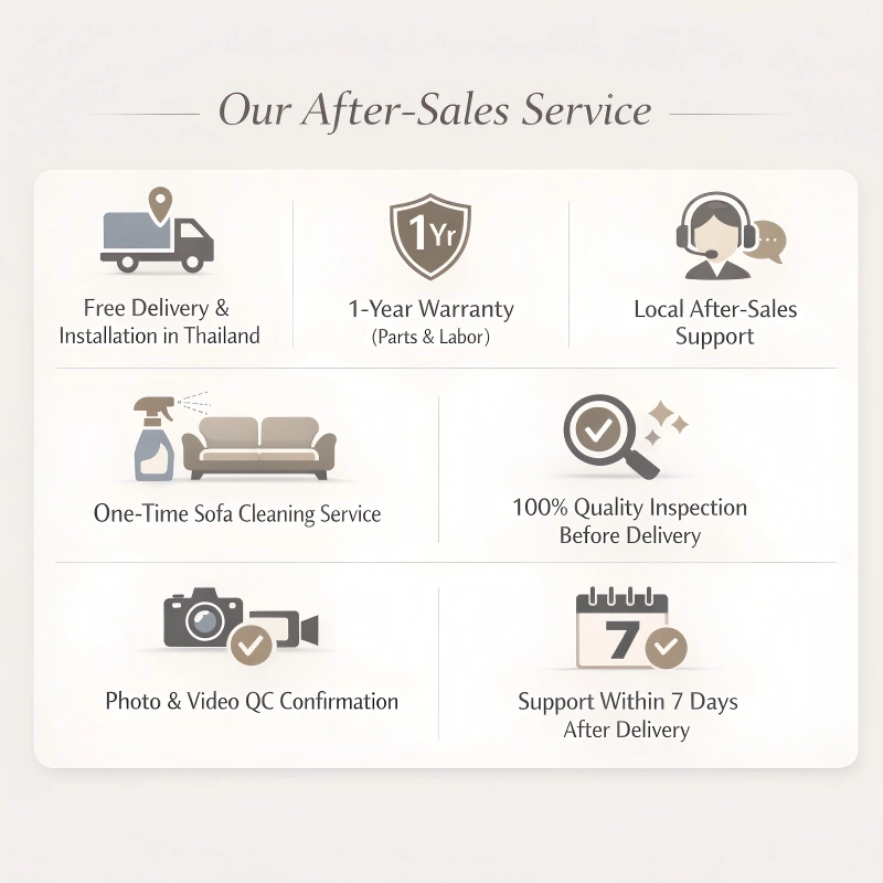 | Service | Free Assembly + Old Sofa Removal | Zero-hassle upgrade for expats in Bangkok |