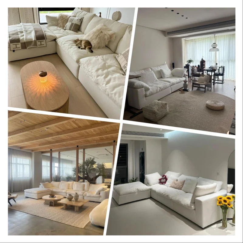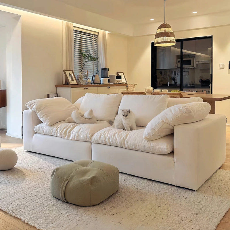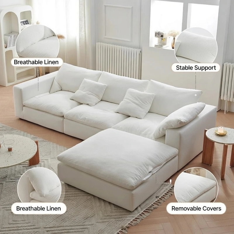 Cloud Cream Wabi-Sabi Linen Feather Modular Sofa Set Minimalist Cozy Style for Living Room