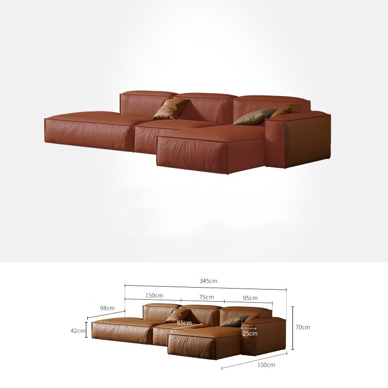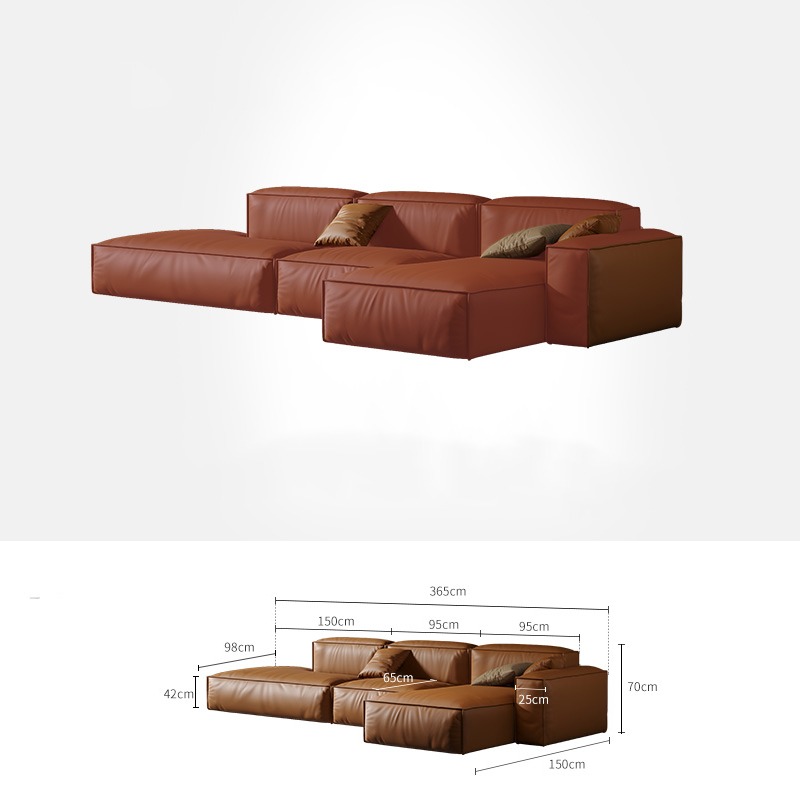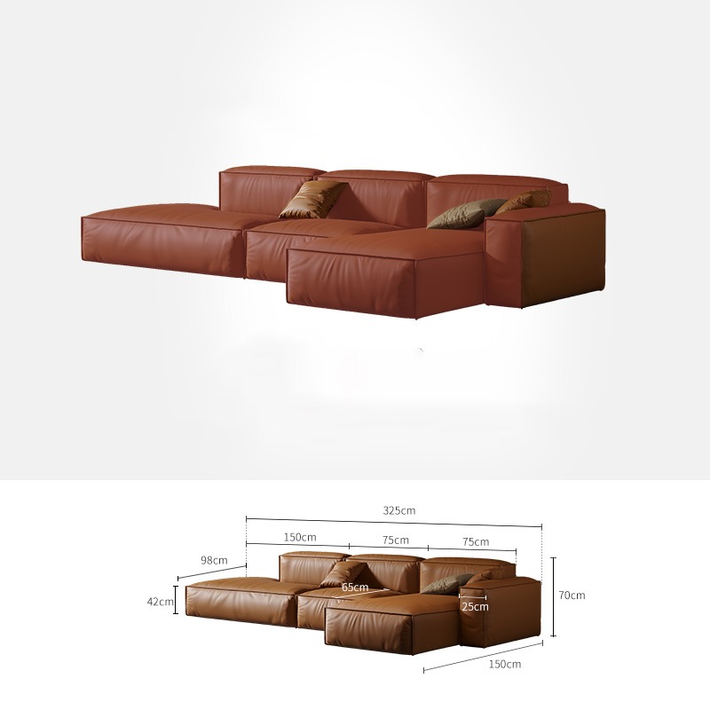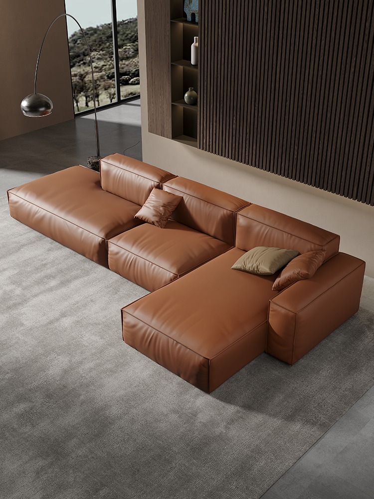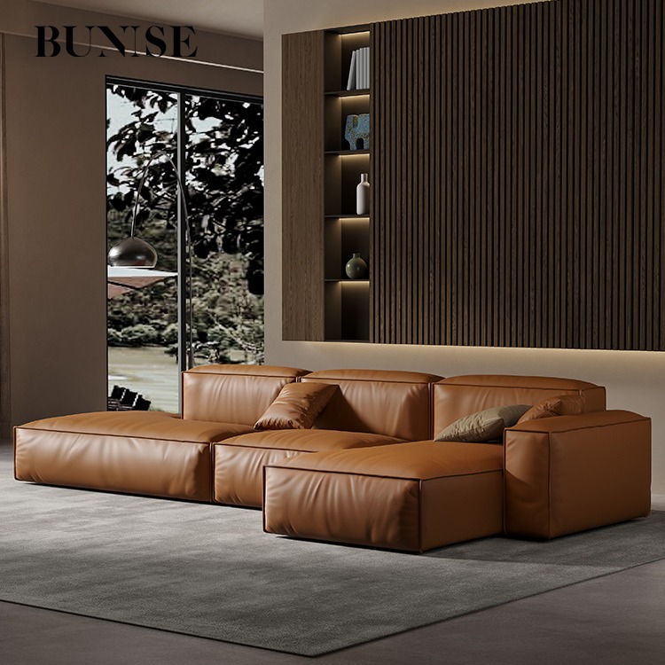Bunise Studio Made,Luxury imported genuine leather sofa modern minimalist L-shaped sofa