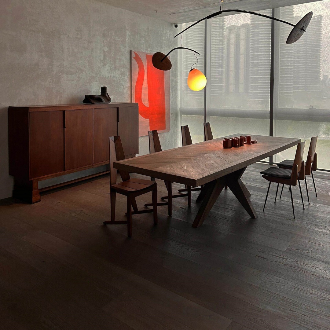 Nordic solid wood rectangular dining table,Modern creative black retro dining table,Wabi-sabi log simple dining table