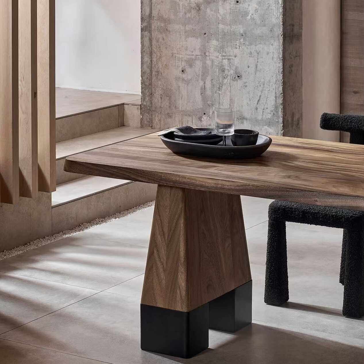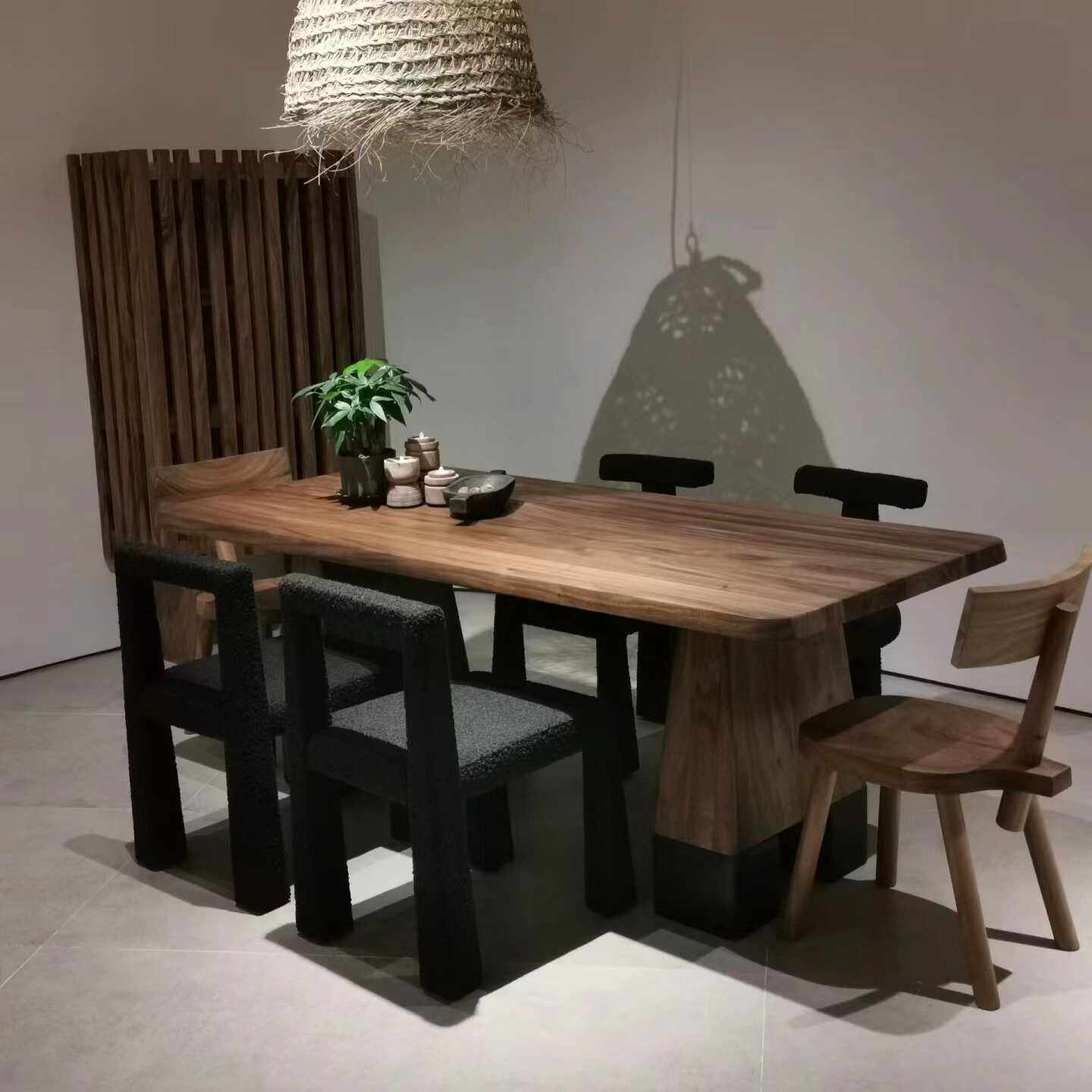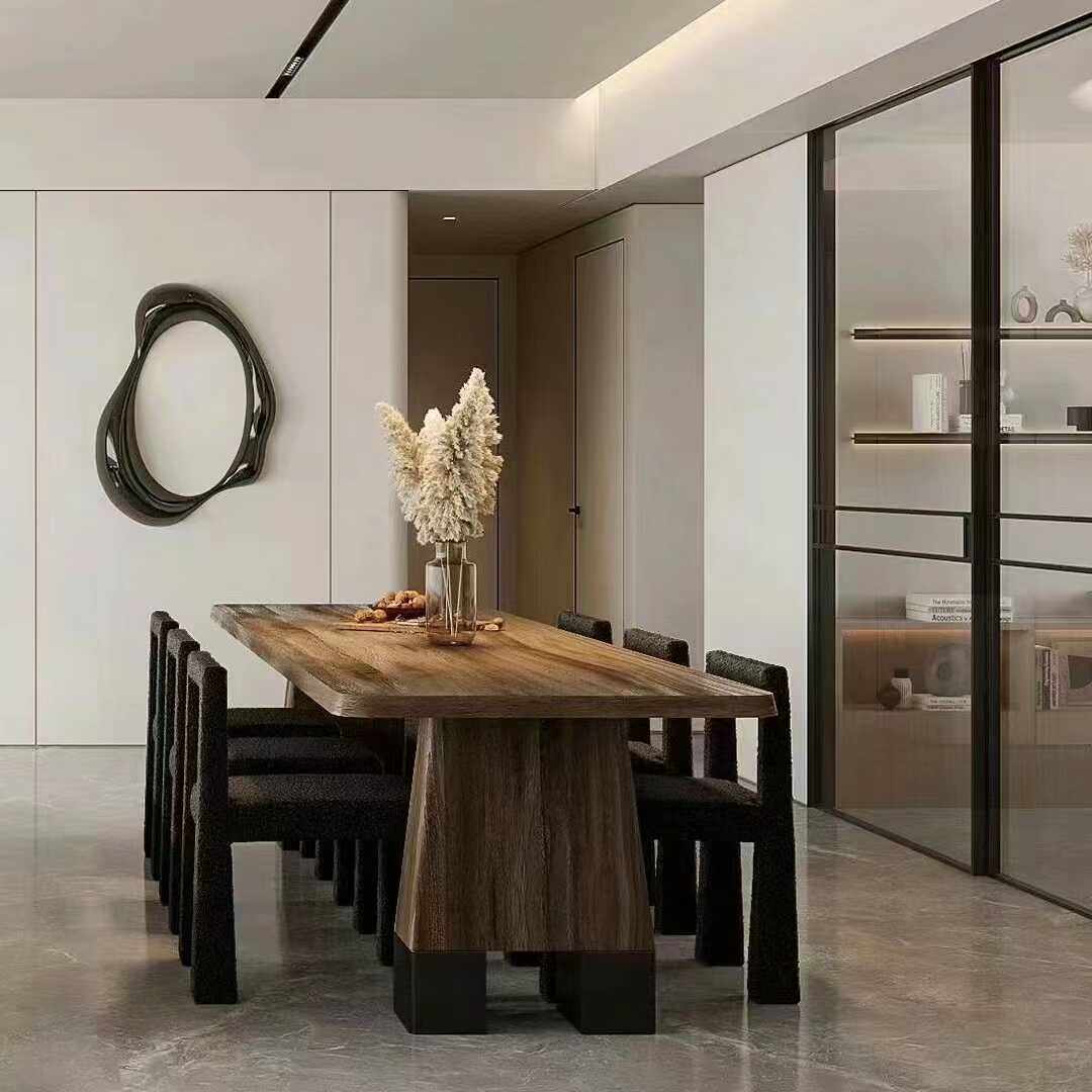Ancient Italian table,Minimal wood grain parquet solid wood rock table,French simple black round table