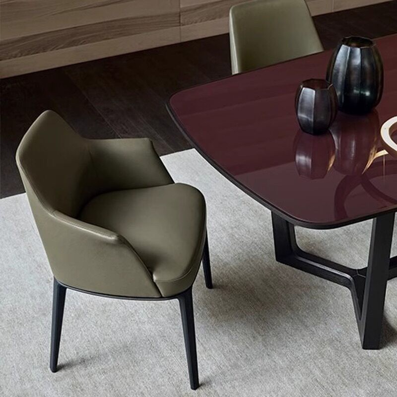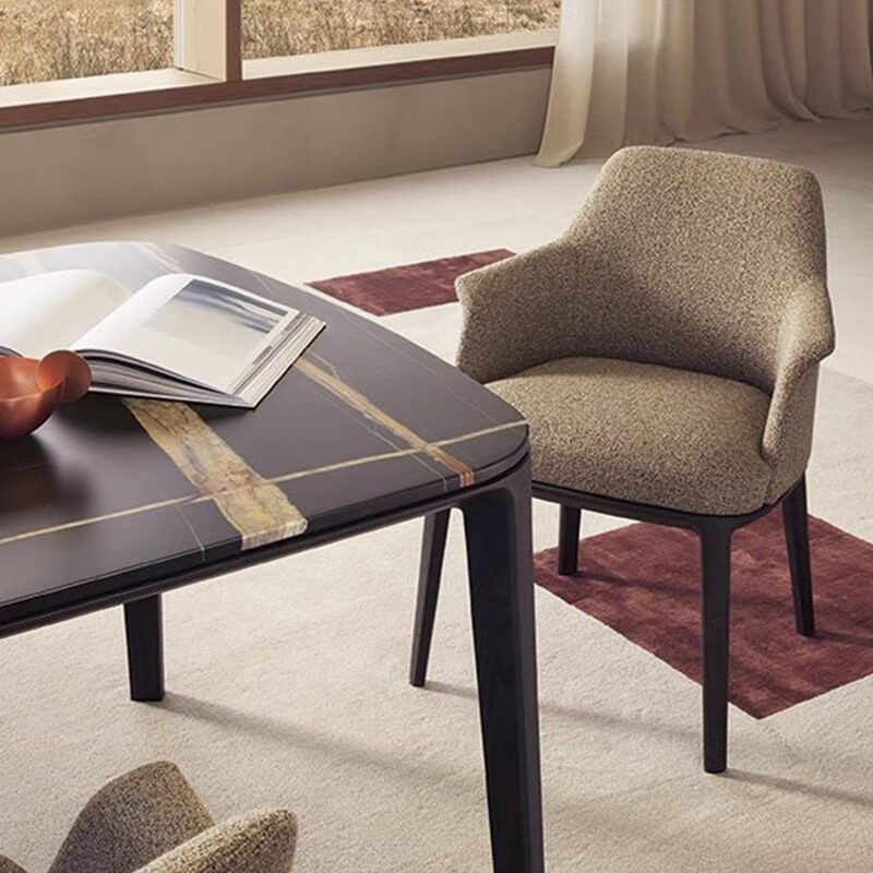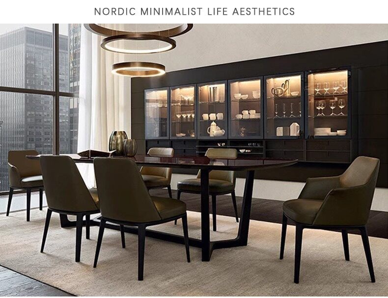 Round table with matte SLATE,Modern simple Italian dining table,High-end ash wood solid wood round table