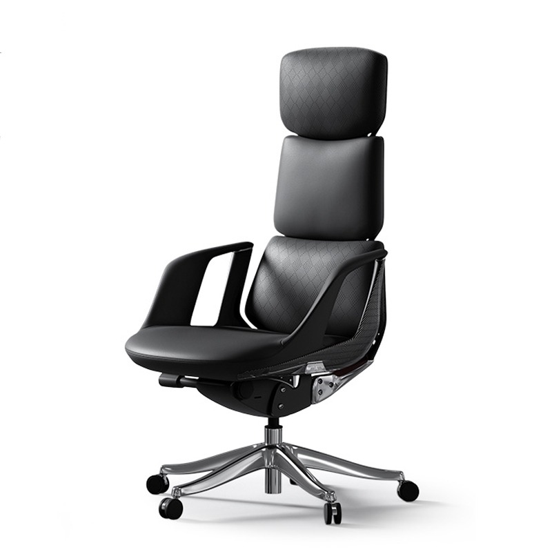 Modern Double Bed Carbon Steel Floating Frame with Genuine Leather Headboard Minimalist Style Ideal for Master Bedroom