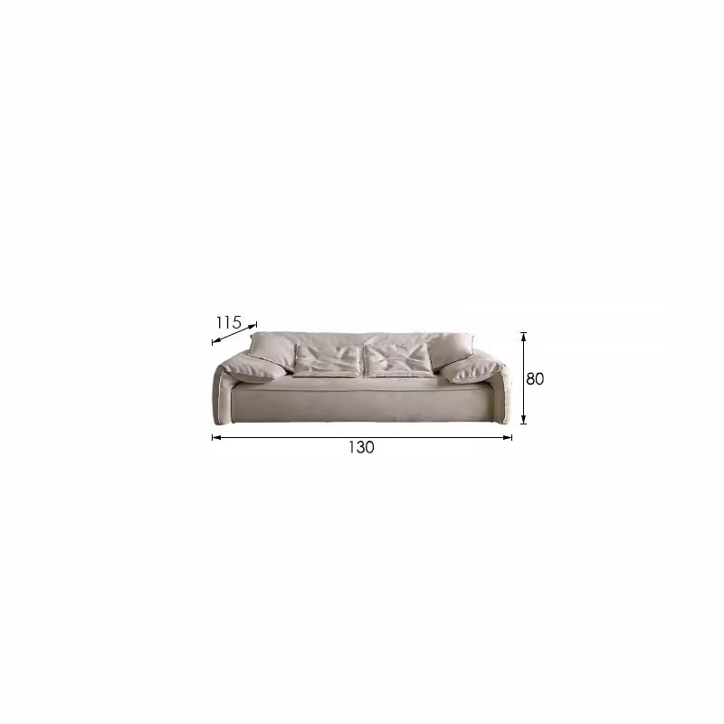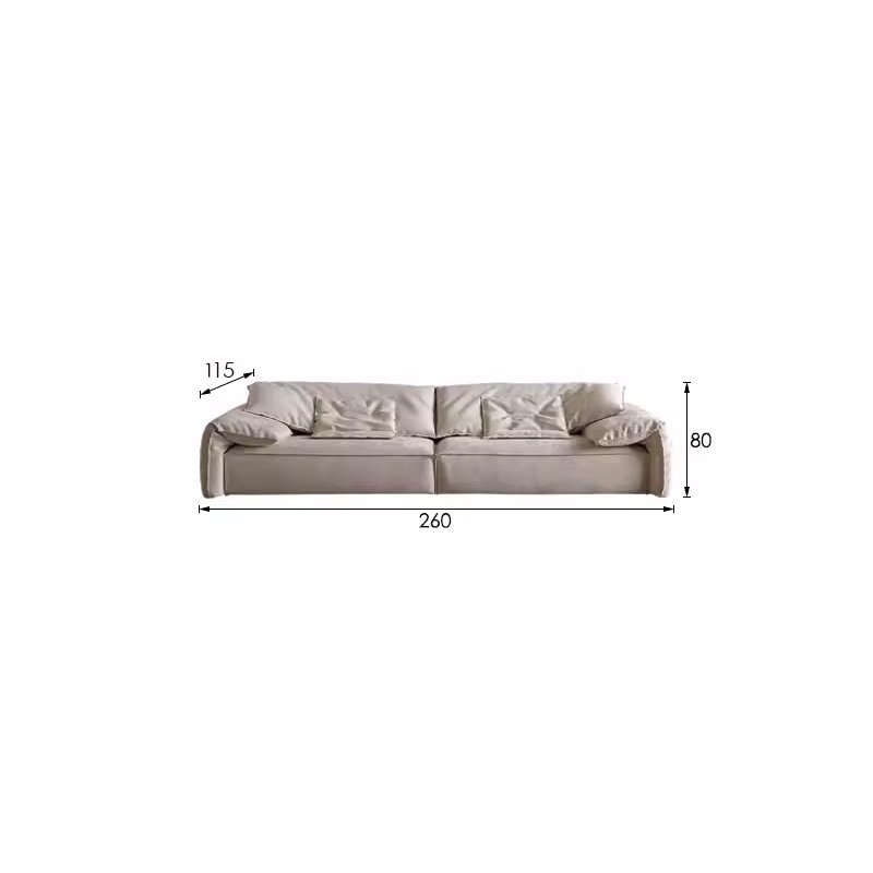 Bunise Vintage Oil Genuine Leather Sofa, Fine Cowhide, Italian Minimalist Style, Luxurious, French Feel, Suitable for Living Rooms, Straight Arrangement, 3 Seats
