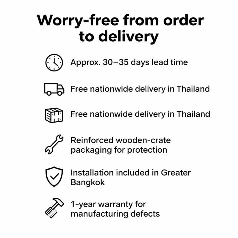 Yes, we provide specialized logistics to major islands such as Phuket and Koh Samui, with products shipped in reinforced wooden crates to ensure zero-damage transit.