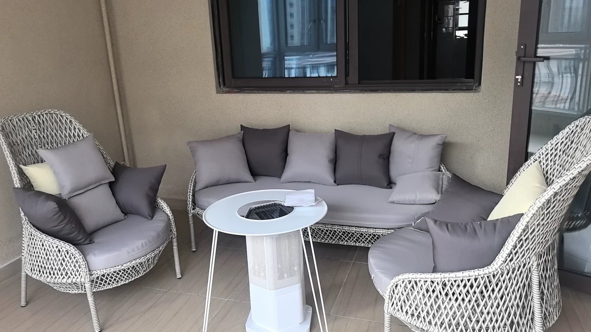 It fits perfectly on the balcony. The style is lovely, it’s very comfortable to sit at, and the value for money is outstanding.