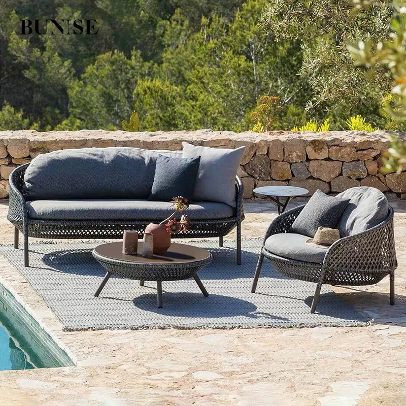 Creative Luxury Woven Sofa and Chair with Coffee Table for Villas, Courtyards, and Showrooms