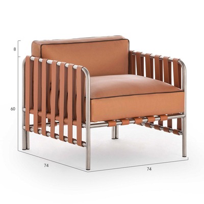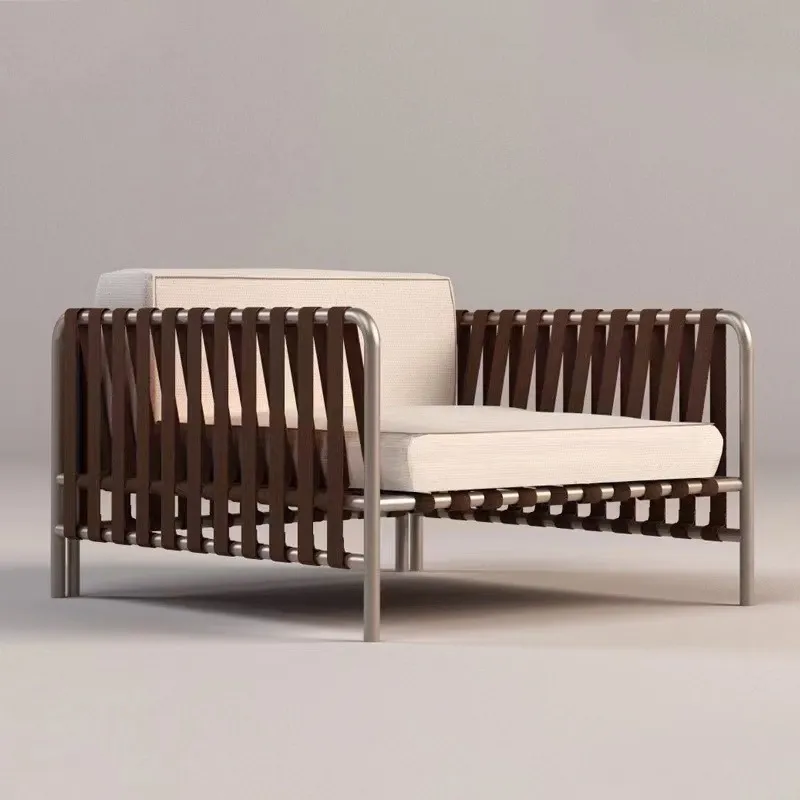 BUNISE Luxury Outdoor Sofa Set P38 – Designer Stainless Steel and Woven Rattan Lounge Chair for Villas, Hotels, and Gardens
