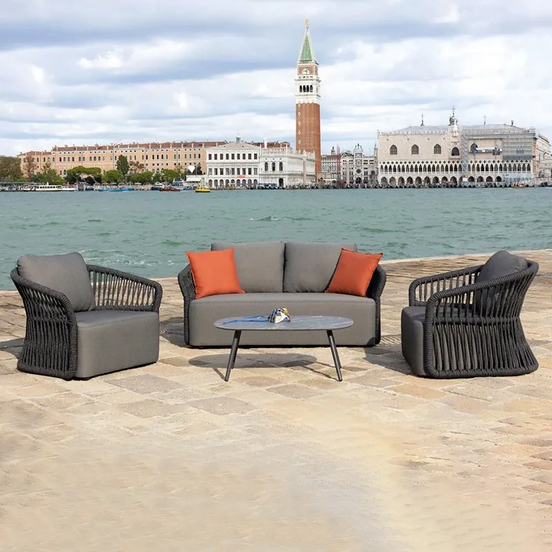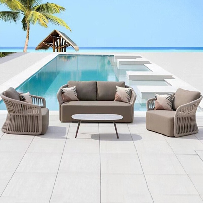 BUNISE Nordic Outdoor Sofa Set P36 - Rope and Woven Rattan Furniture for Gardens, Balconies, and Villas