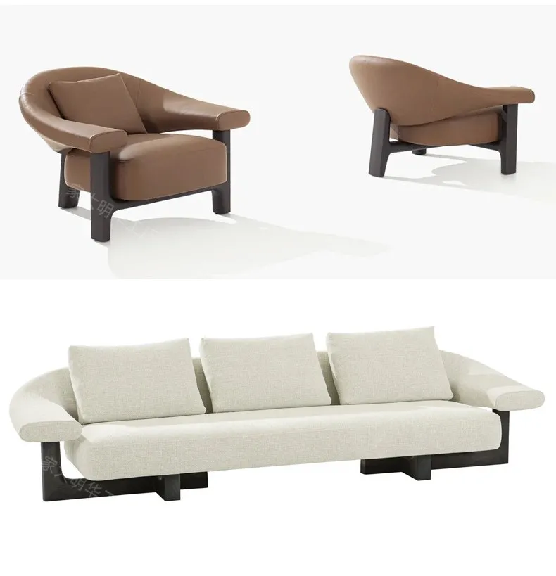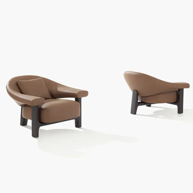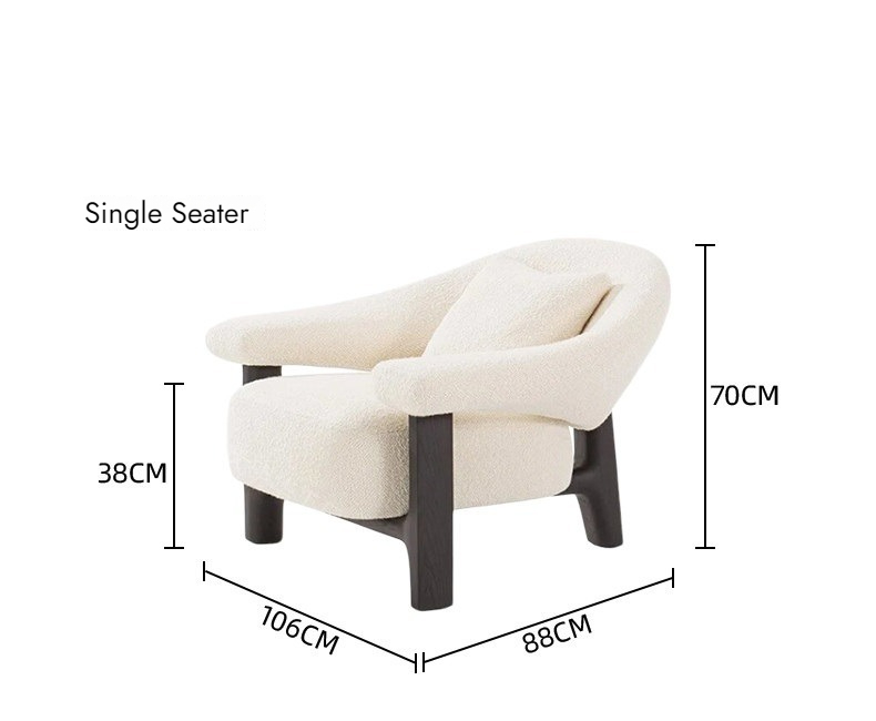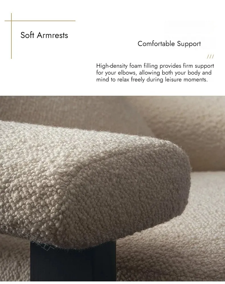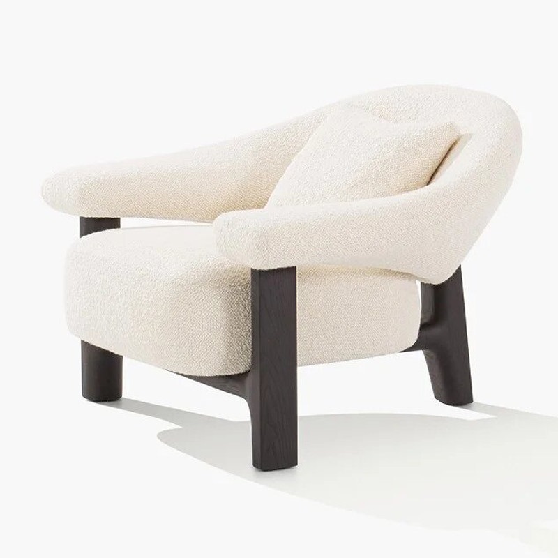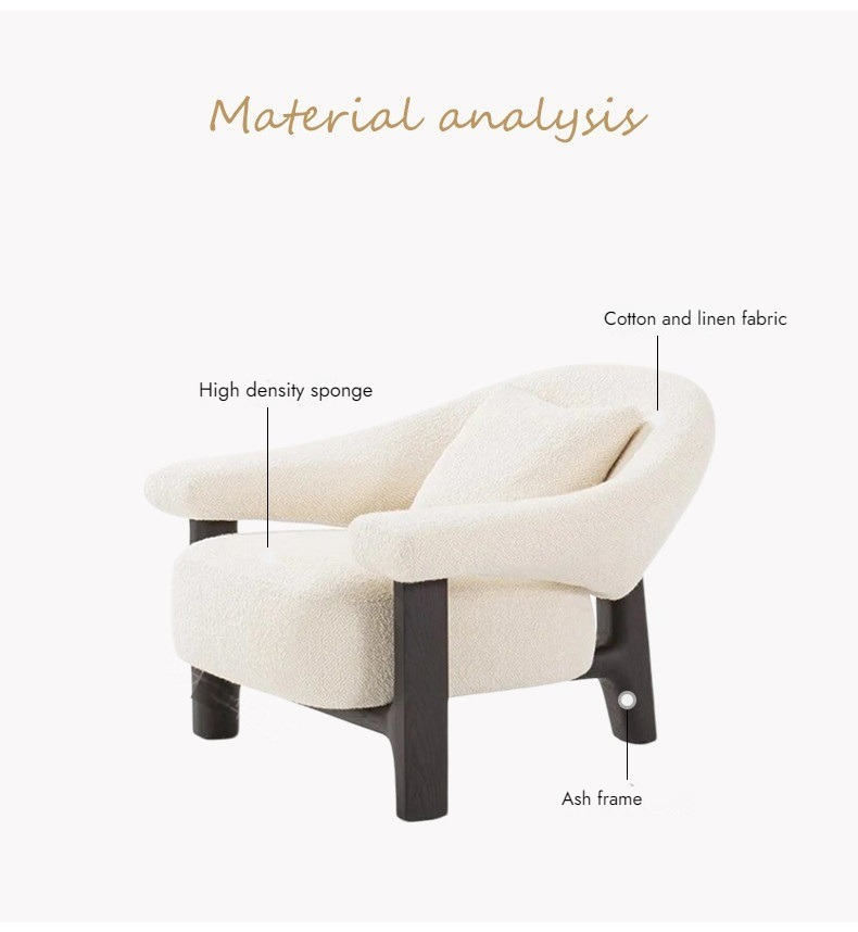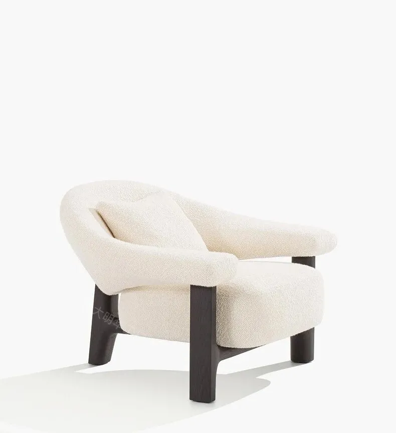 Single Sofa Chair Vintage Wabi Sabi Style Solid Wood Frame with Mohair Upholstery Designer Piece for Living Room and Balcony