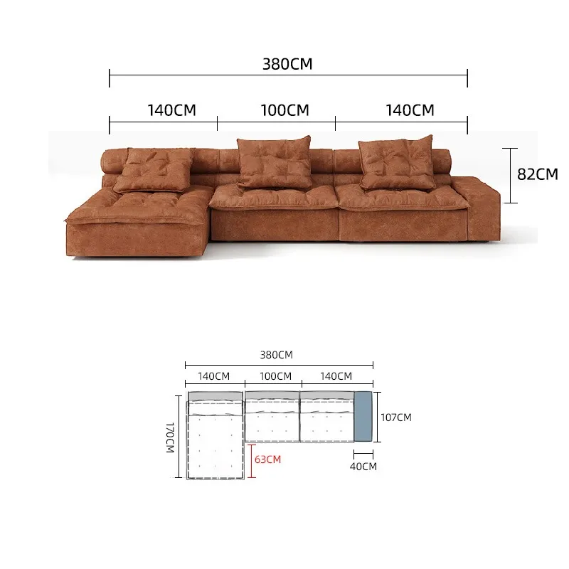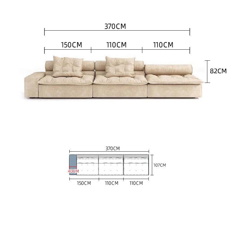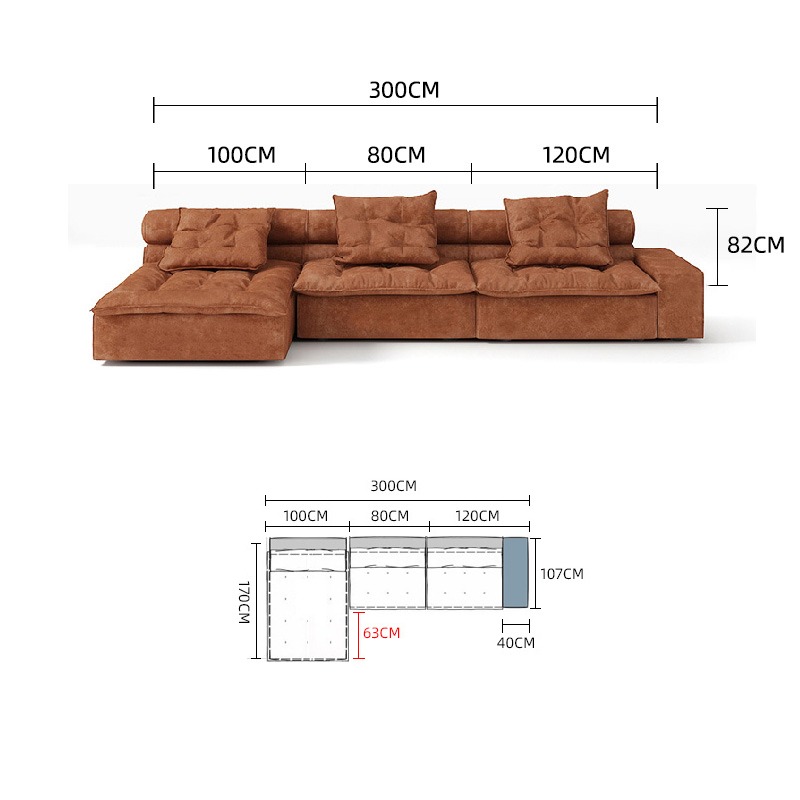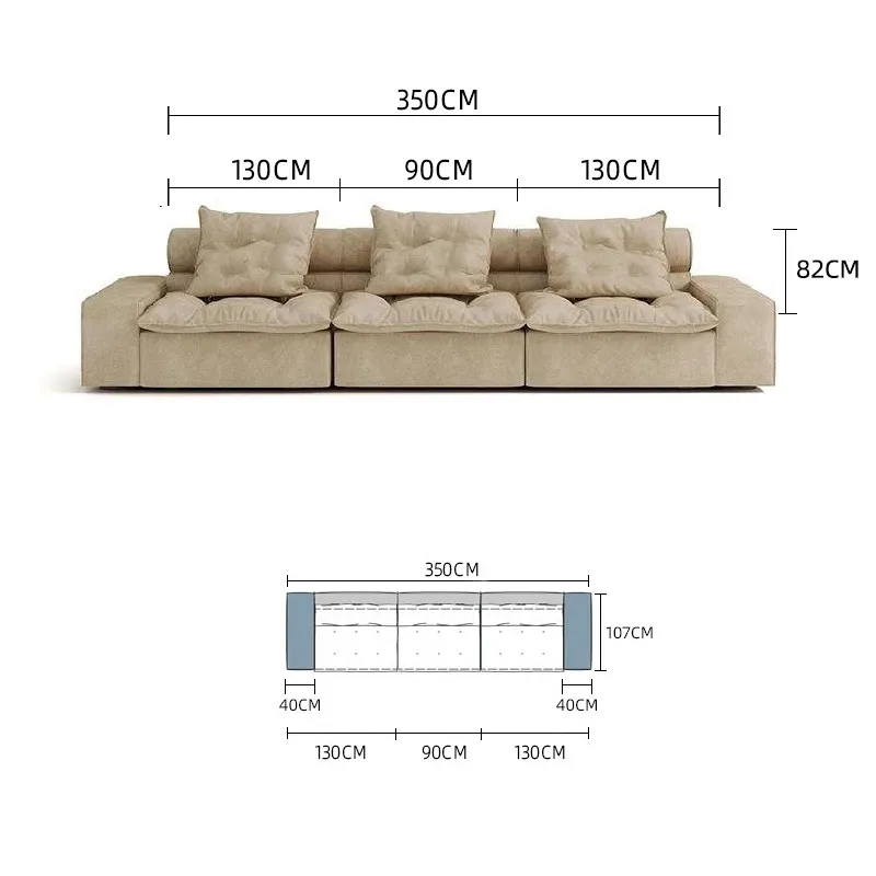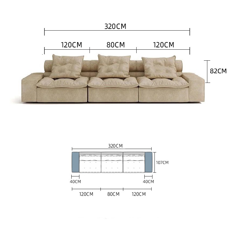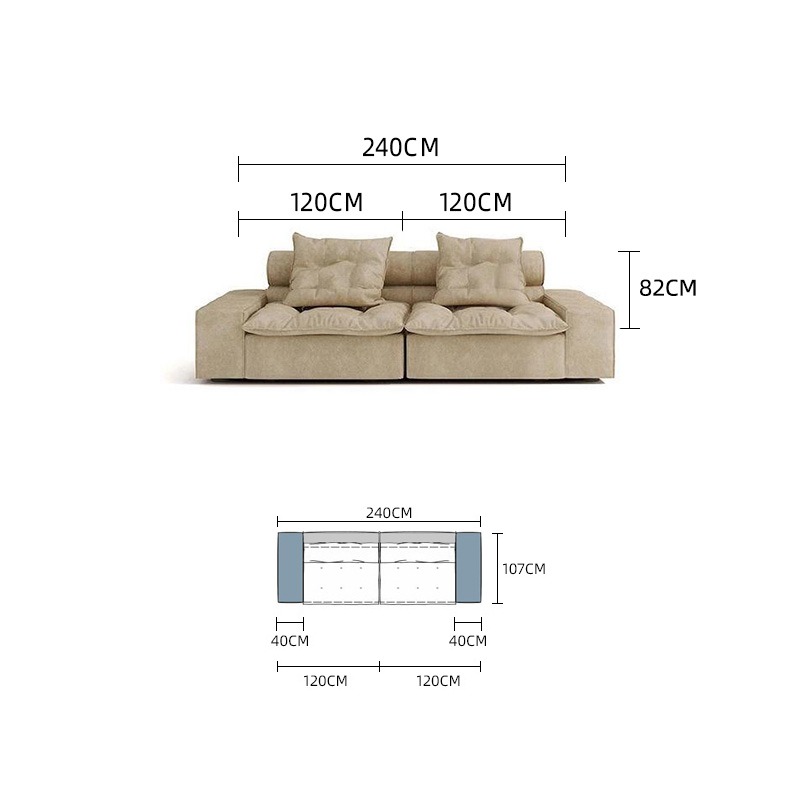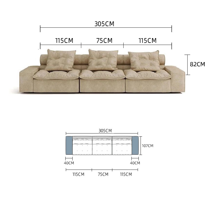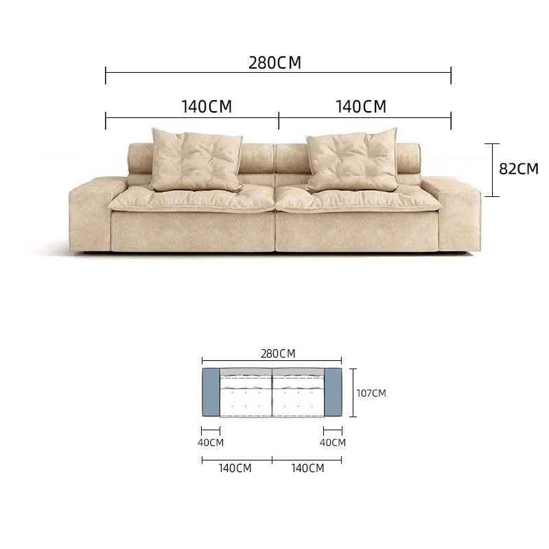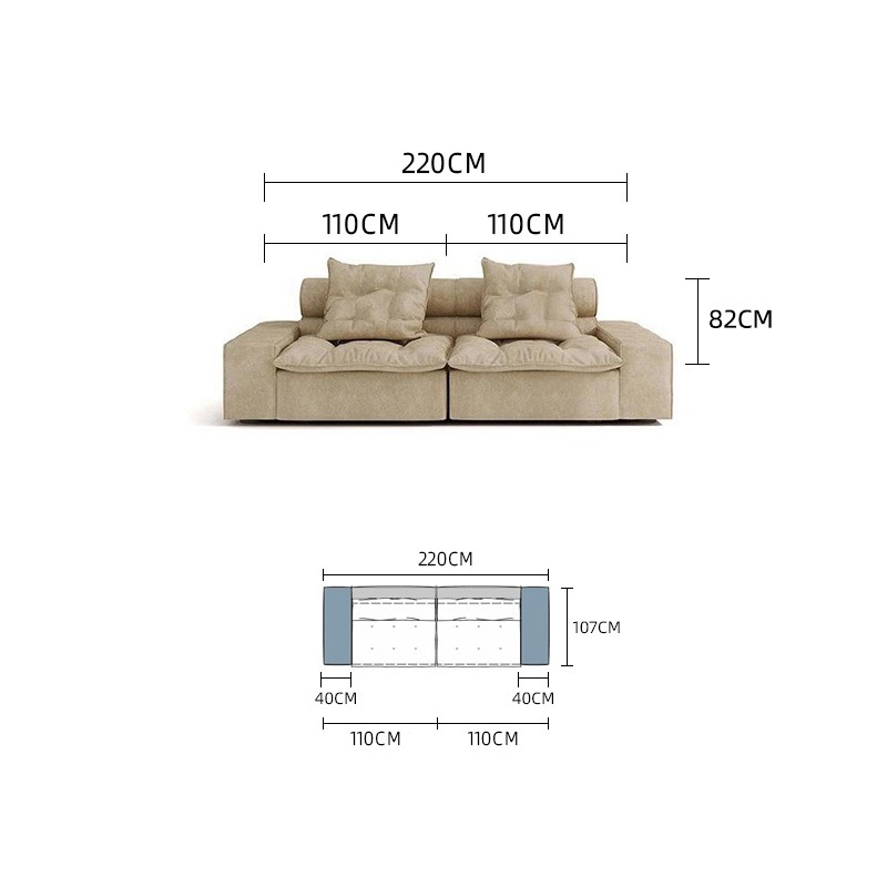 Bunise Vintage Oil Genuine Leather Sofa, Fine Cowhide, Italian Minimalist Style, Luxurious, French Feel, Suitable for Living Rooms, Straight Arrangement, 3 Seats