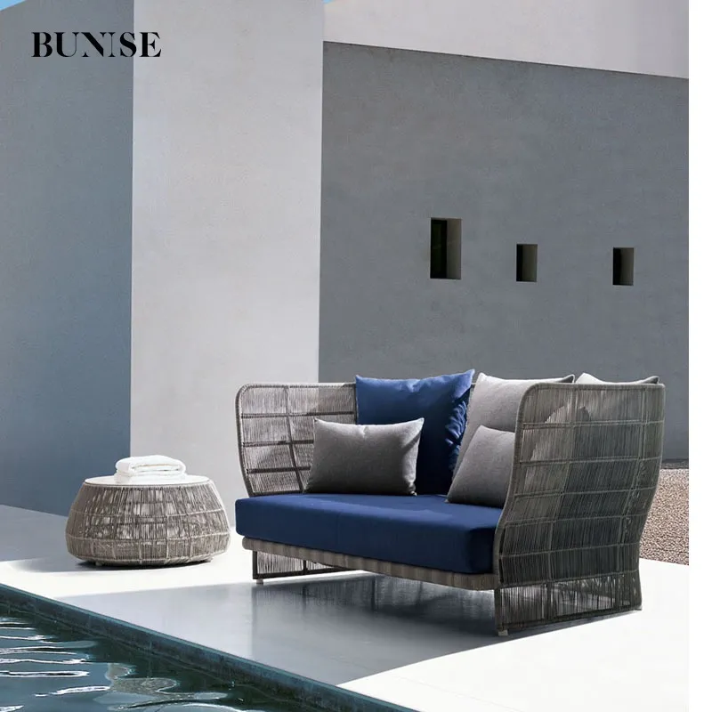 BUNISE Nordic Outdoor Wooden Sofa Set P42 - Waterproof & UV-Resistant Rattan Chair for Patios, Villas, and Living Spaces