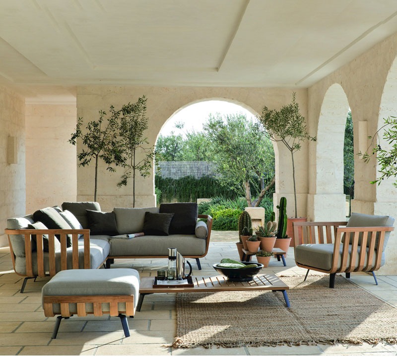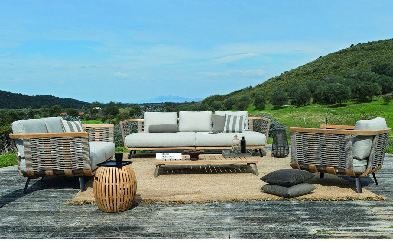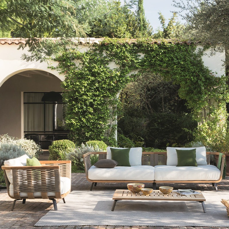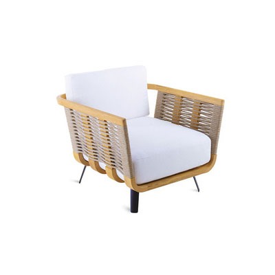 BUNISE Outdoor Teak Sofa P41 – Luxury Rattan Lounge Chair for Villas, Gardens, Hotels, and Balconies