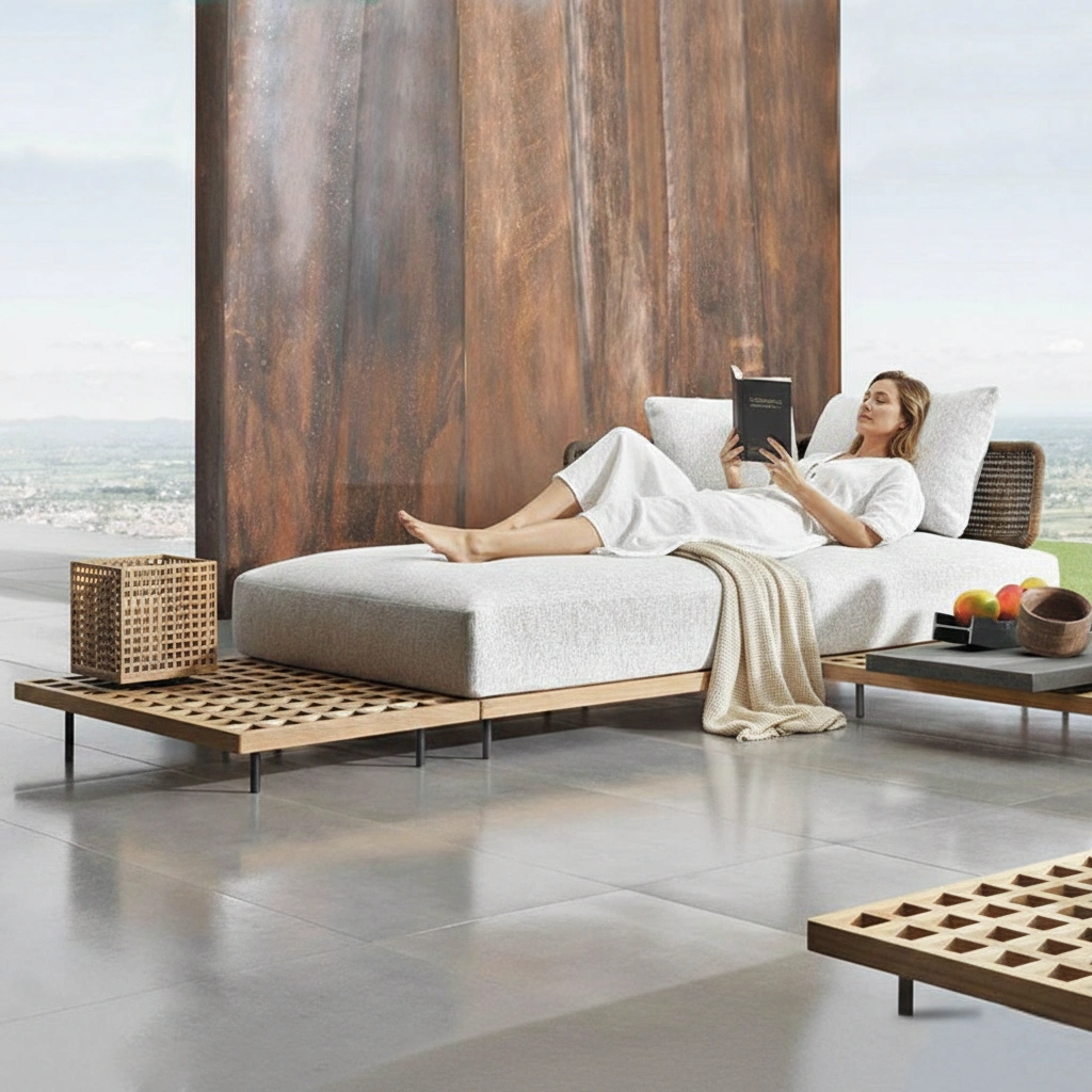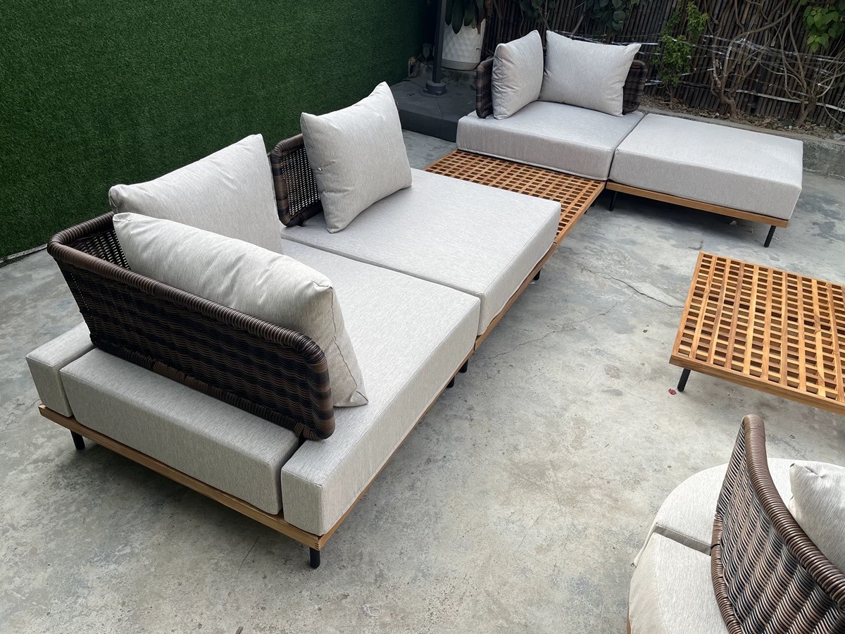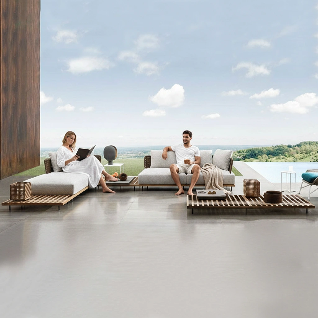 Absolutely. We use Grade-A teak (naturally oil-rich and rot-resistant) and UV-stabilized PE rattan. Combined with water-repellent fabrics and a rust-proof frame, it remains durable even in open coastal or poolside environments.