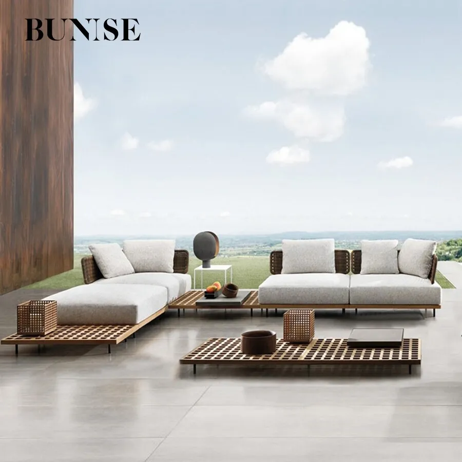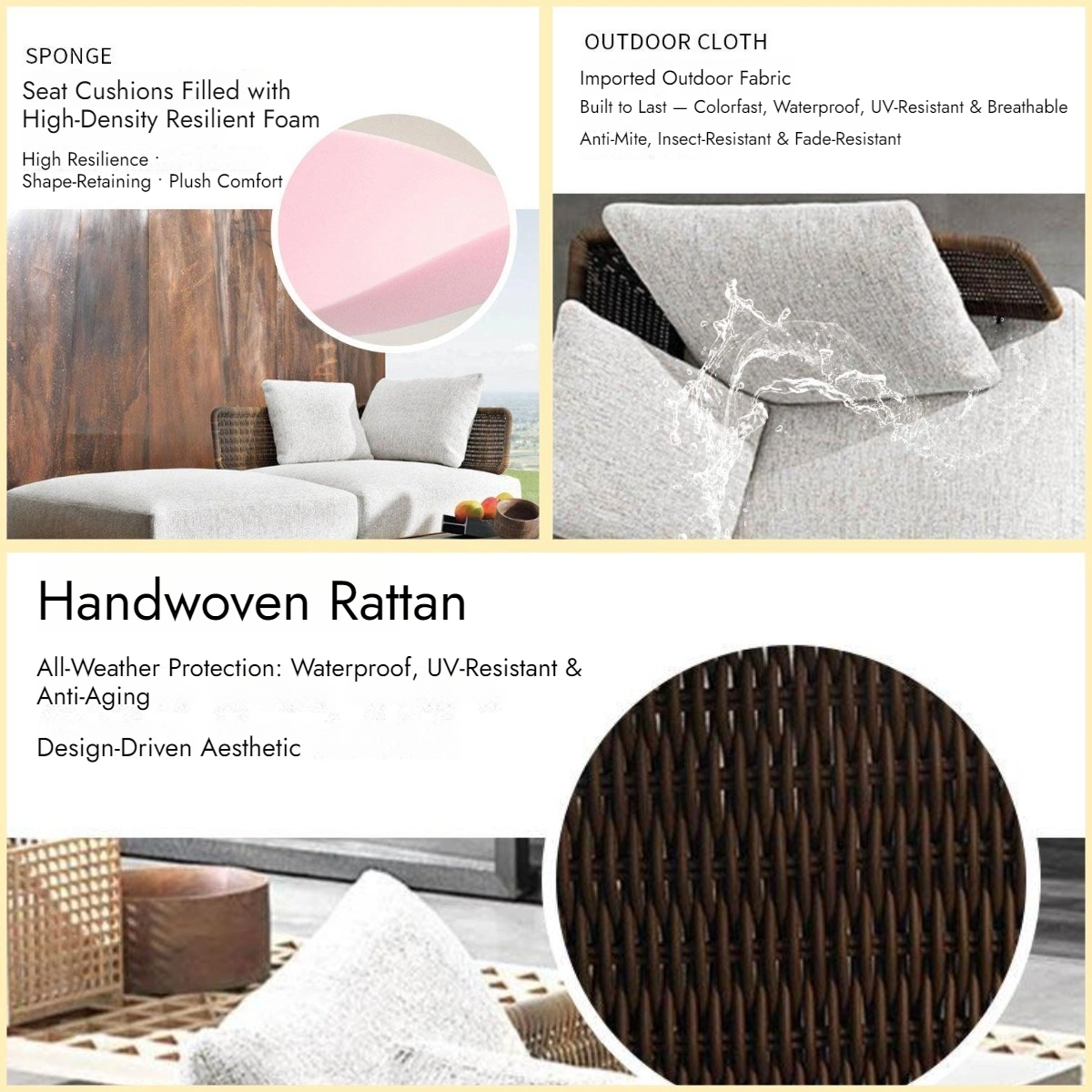 True luxury is built on a foundation of nature and strength. We selected 20+ year-old premium teak and a 2.0MM thickened aluminum alloy frame to ensure zero-deformation for 10 years . Combined with hand-woven, UV-resistant rattan, this sofa defies aging and elements, maintaining its artistic beauty year after year