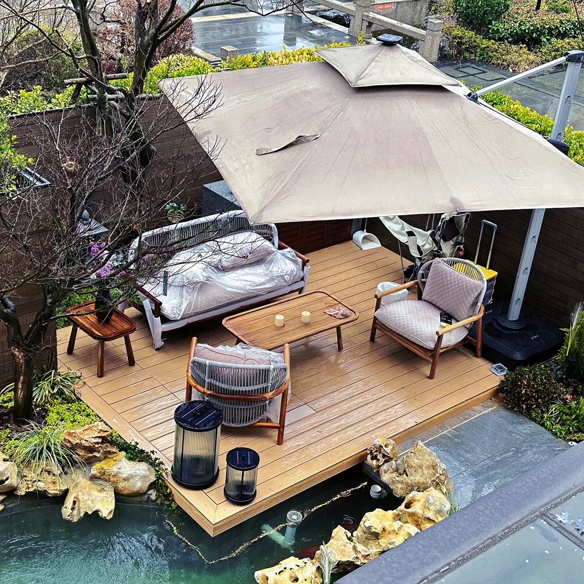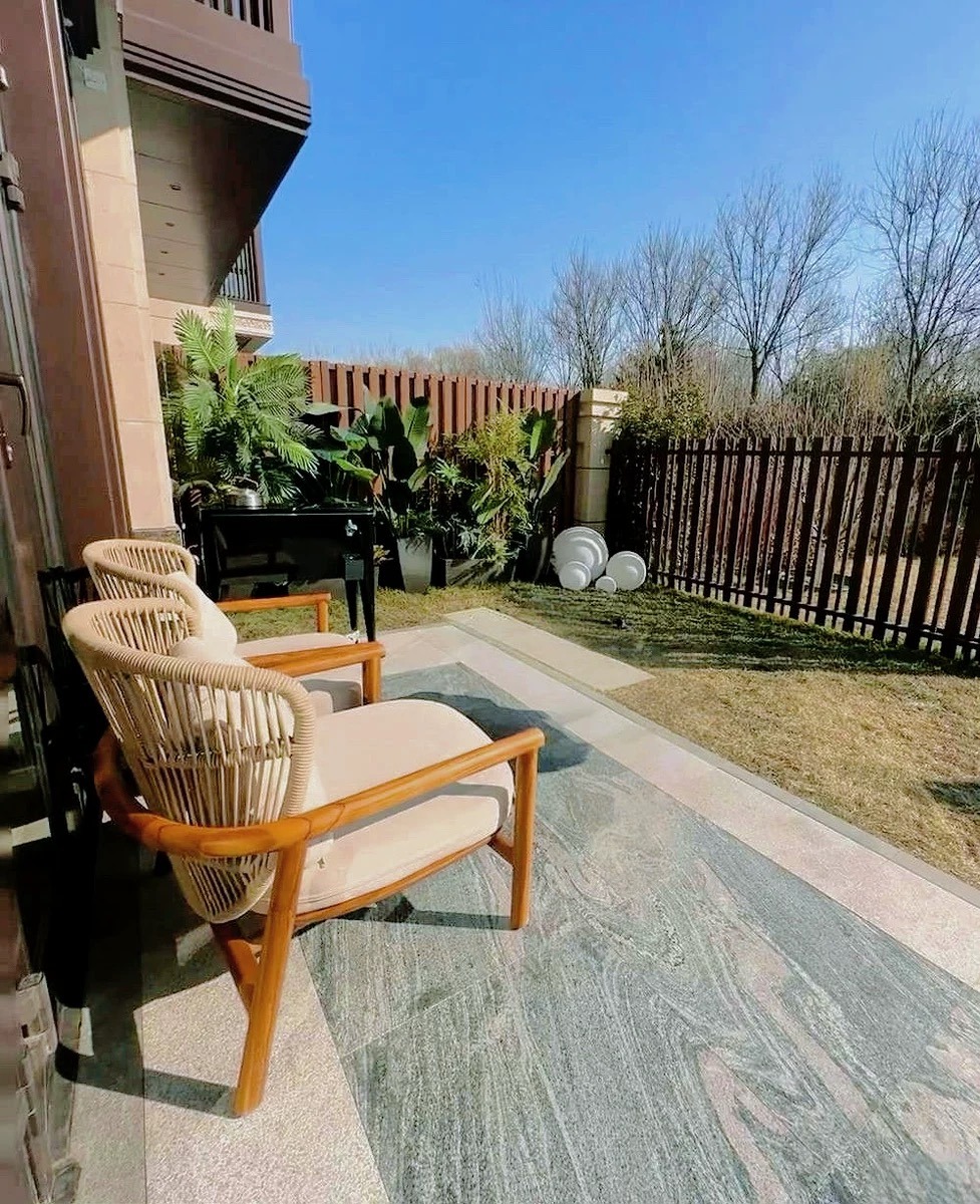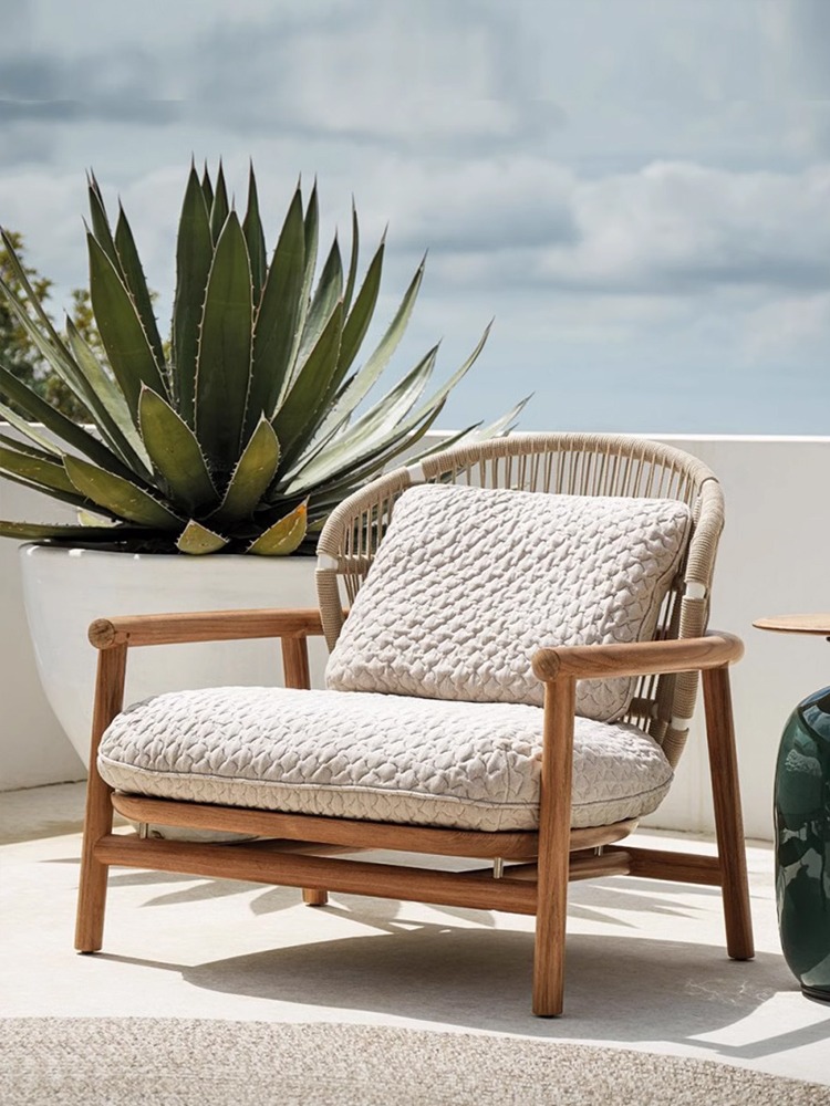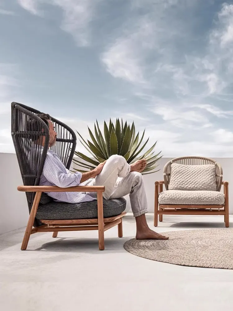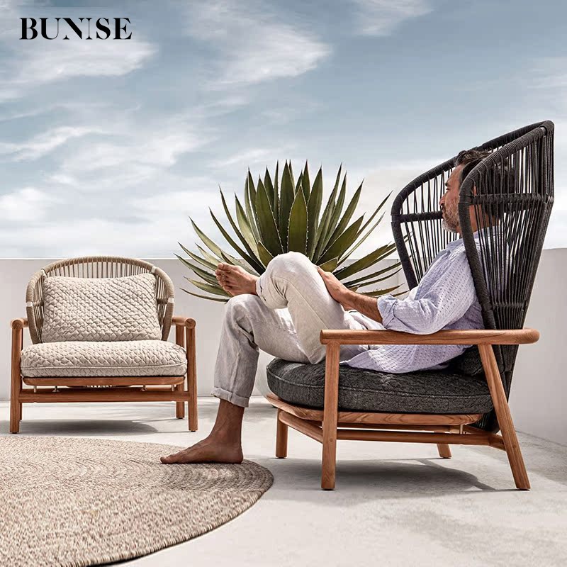 Bunise Real Wood Sofa for Outdoors, Rattan Weave Design, Waterproof and Sun Protection, Modern Luxury Style. Suitable for Gardens, Balconies and Villas