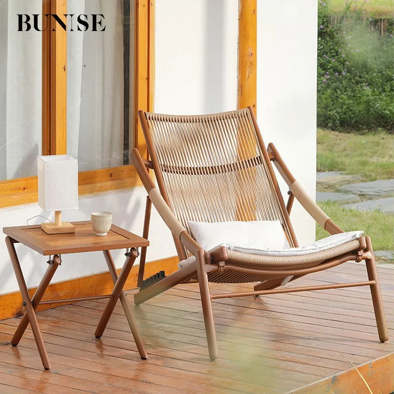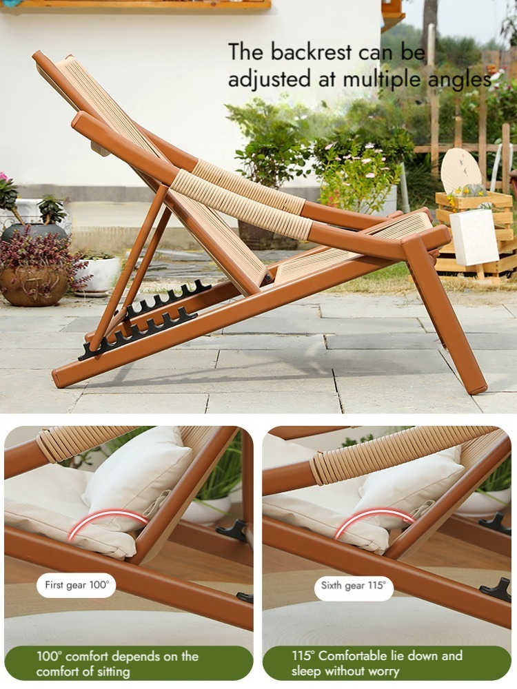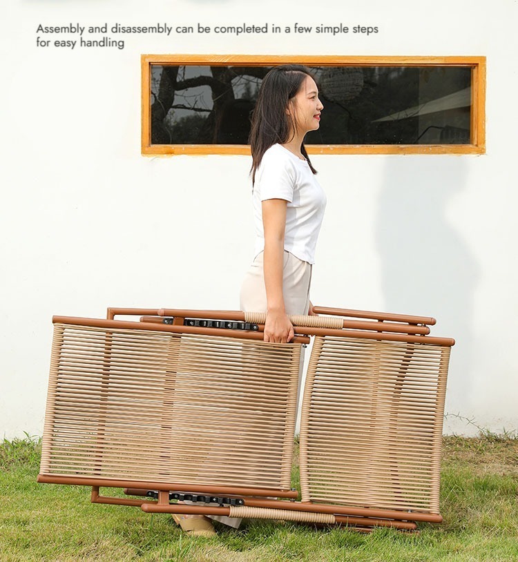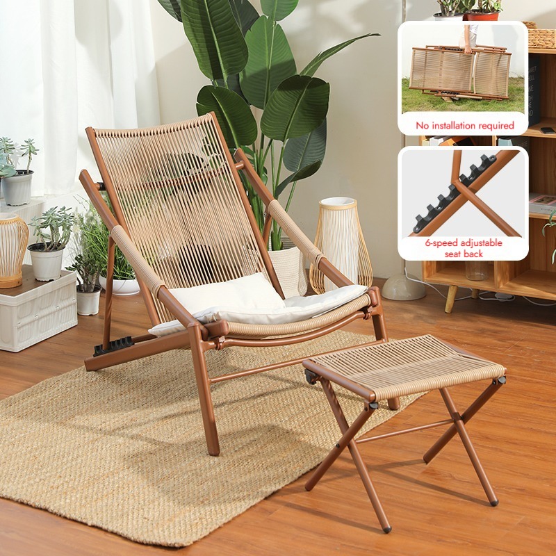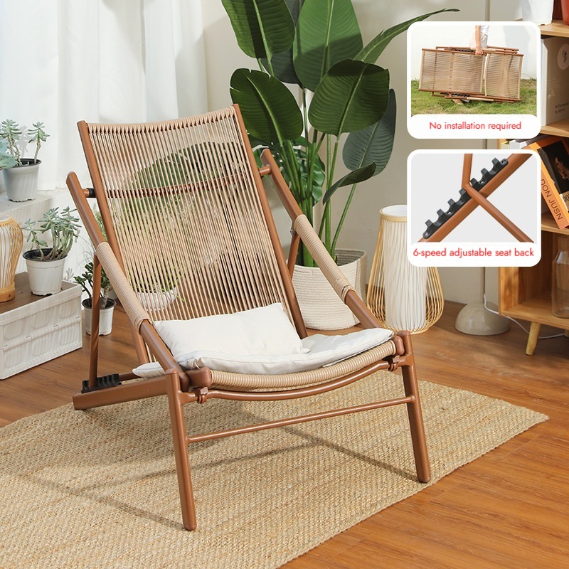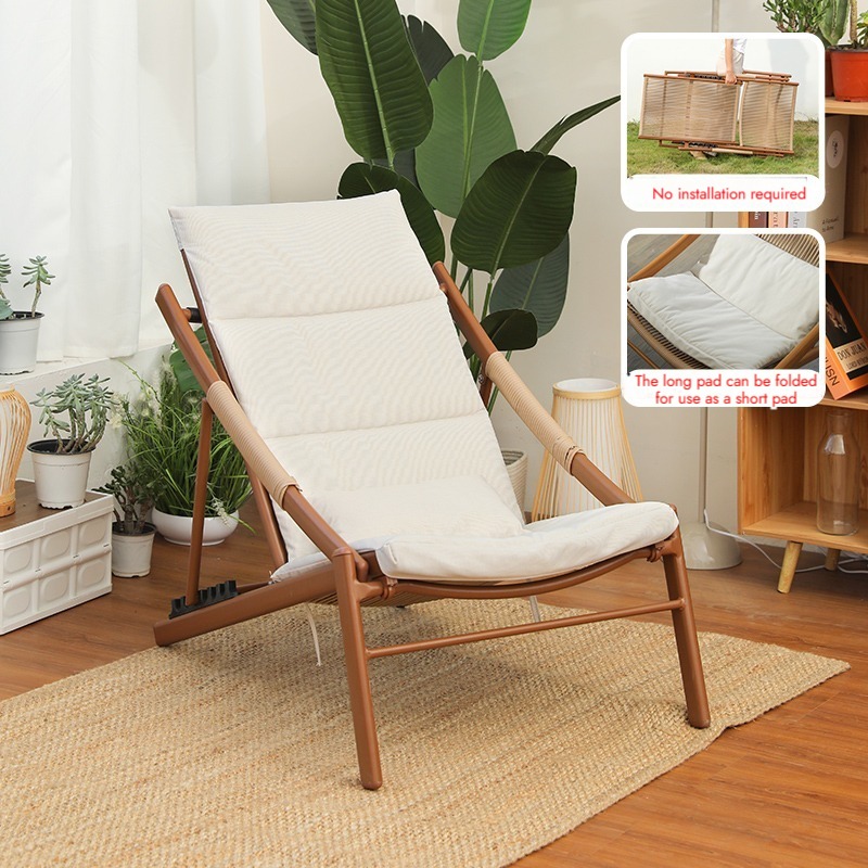 Bunise Foldable Leisure Chair, Woven Rattan, Suitable for Balconies, Gardens and Outdoor Patios. Can Be Used as a Reclining Sofa or a Daytime Nap Chair
