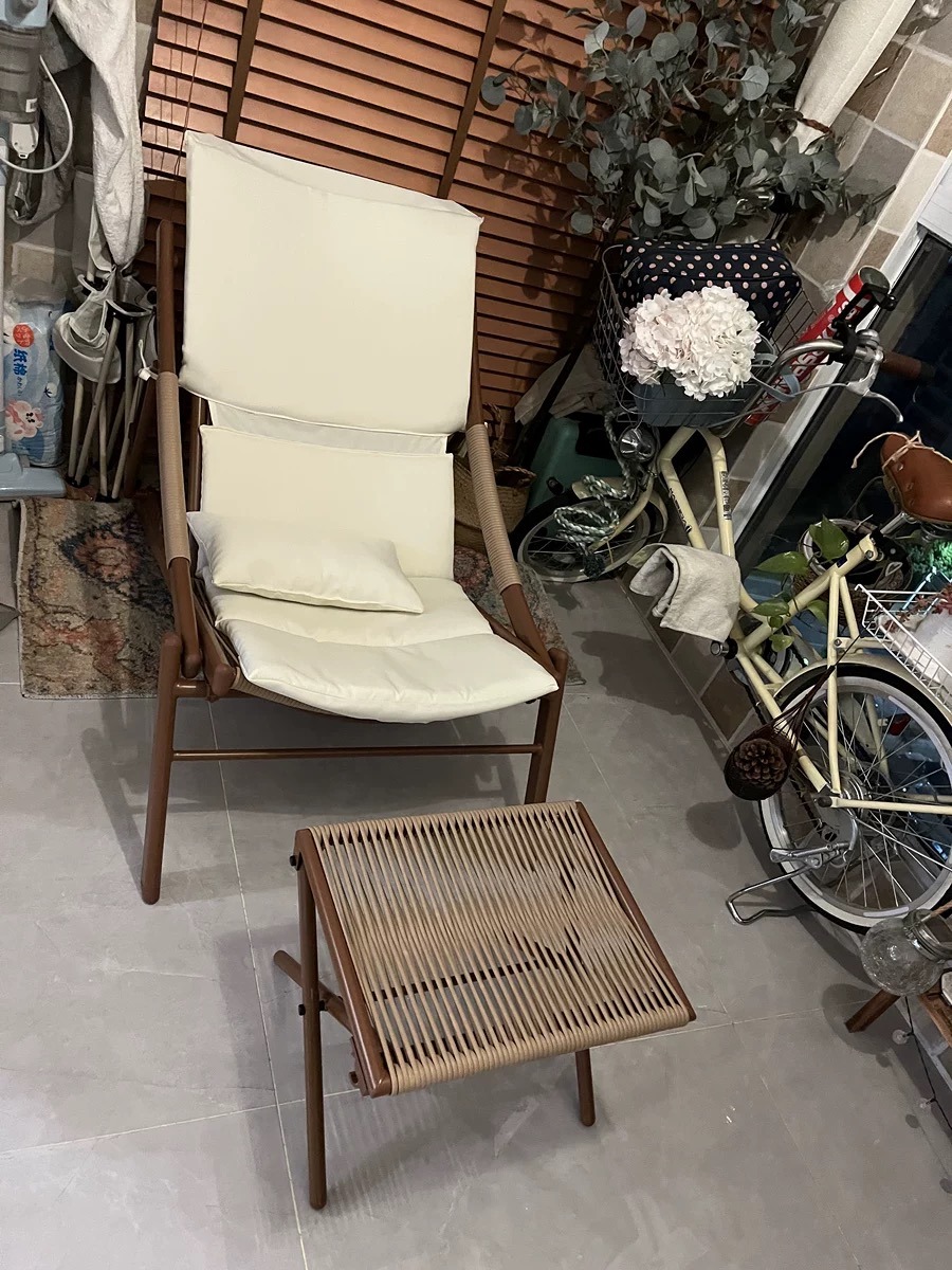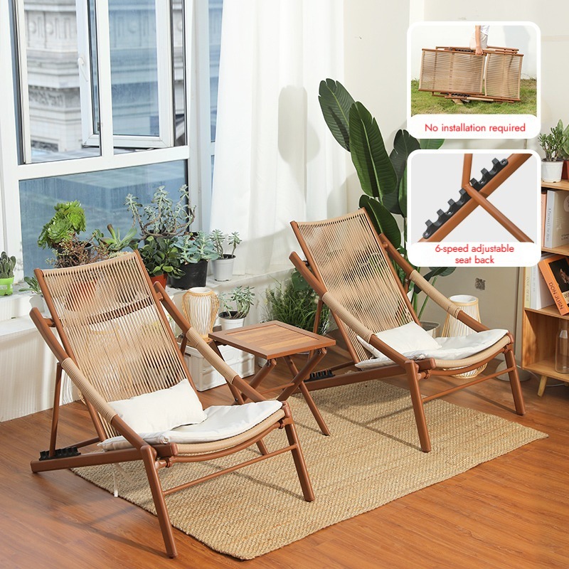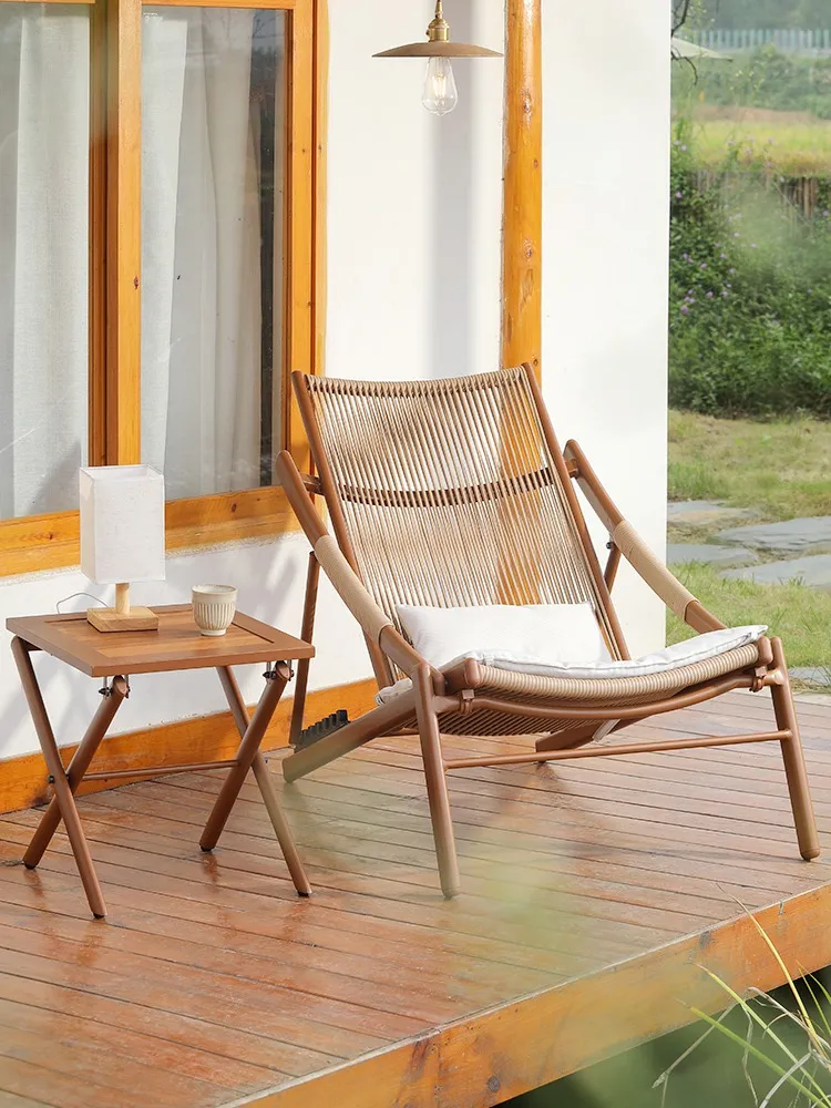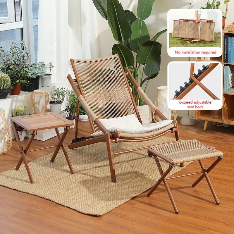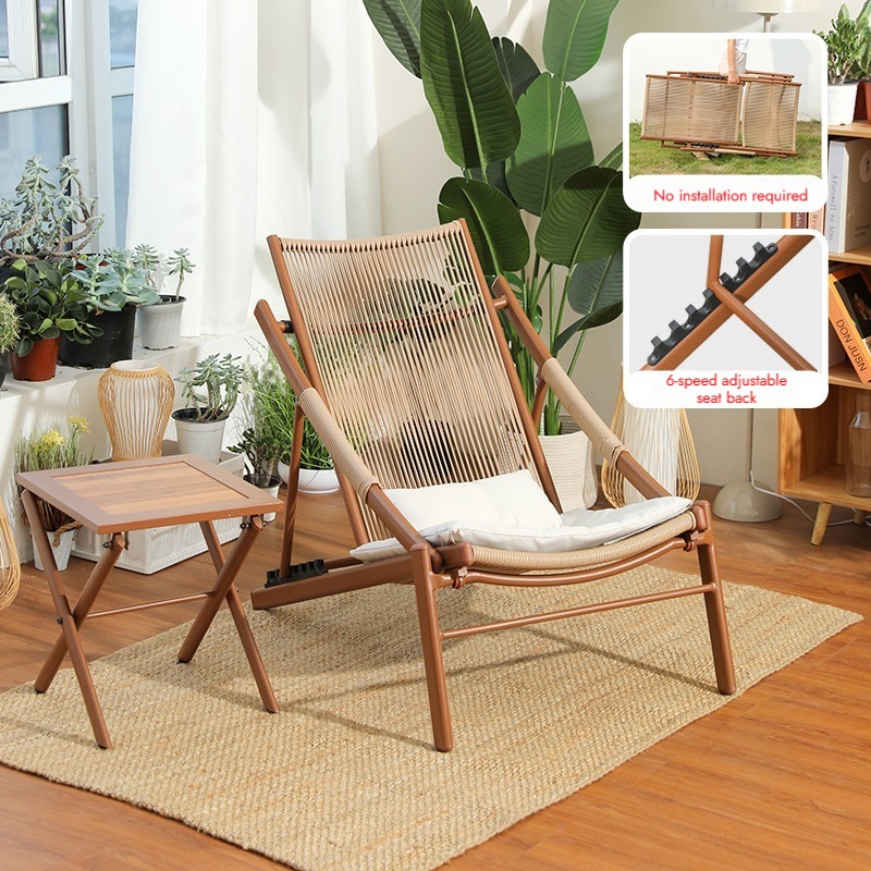 Bunise Foldable Leisure Chair, Woven Rattan, Suitable for Balconies, Gardens and Outdoor Patios. Can Be Used as a Reclining Sofa or a Daytime Nap Chair