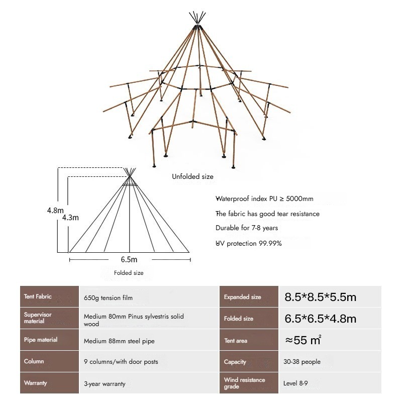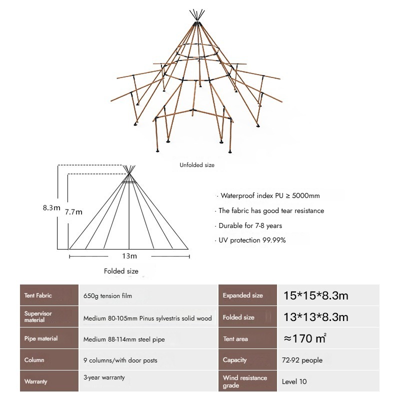 Love this big teepee! Ideal for homestay guests or big outdoor events. Sturdy, spacious, and the classic design makes it a hit. So useful for my campsite!