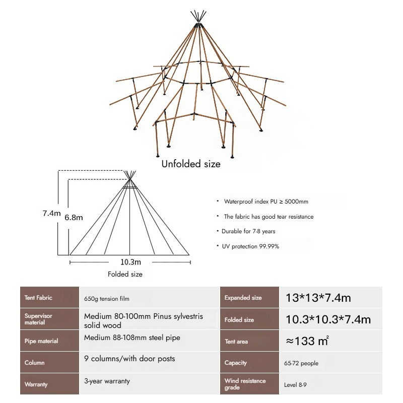 Bunise Outdoor Indian Pyramid Tent, Wide Hat Shape, Luxury Camping Style. Suitable for Restaurants, Tented Areas, Expos and Tourist Attractions