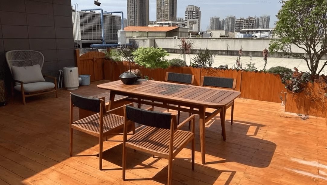Outdoor Solid Wood Table and Chairs Set, Durable Teak for Garden Villa Hotel Terrace, Modern Style