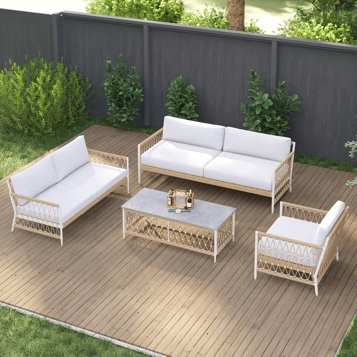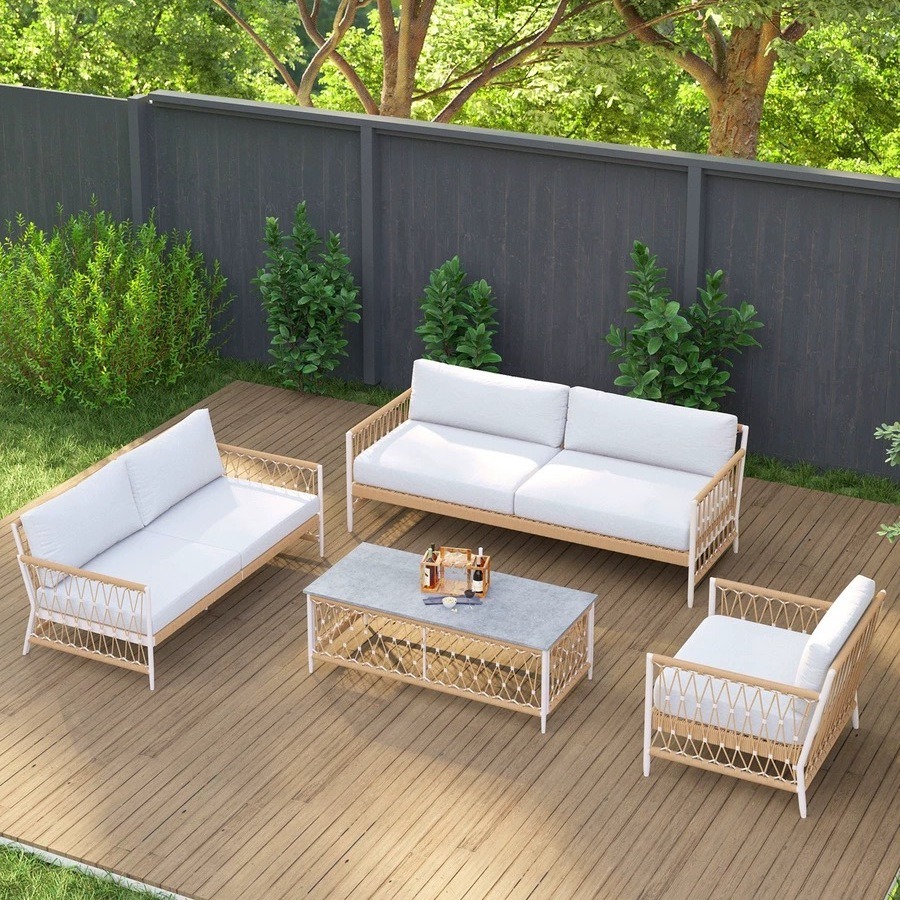 Outdoor Rattan Sofa Set Rotatable Waterproof Sunproof for Patio Garden Villa or Balcony Modern Design
