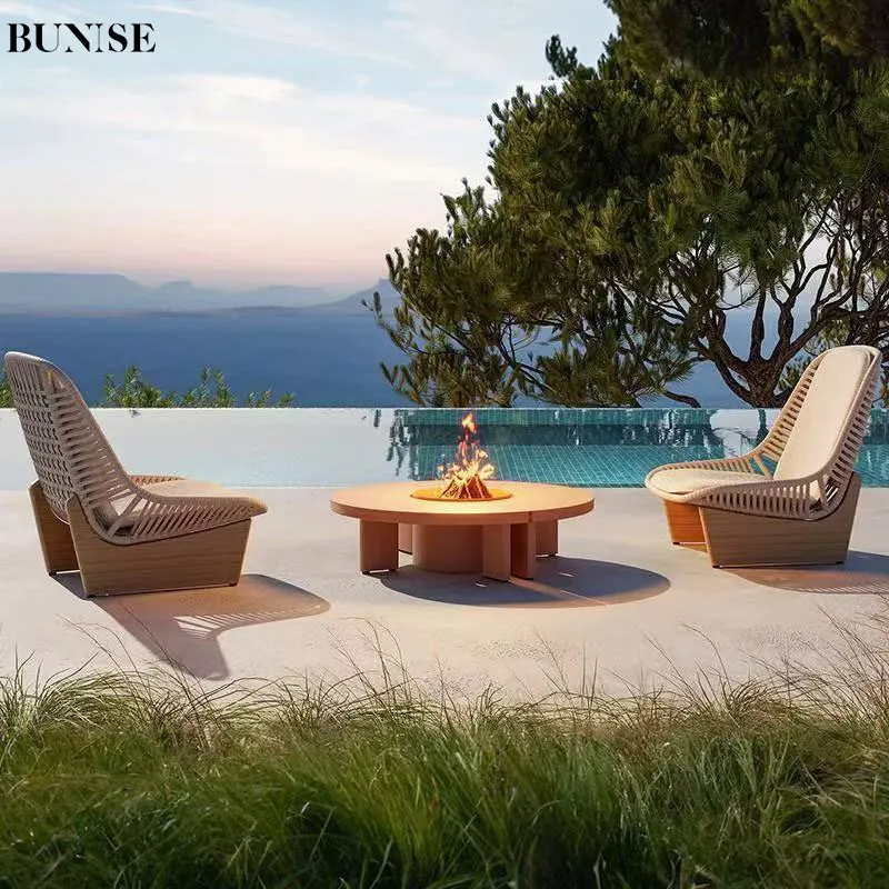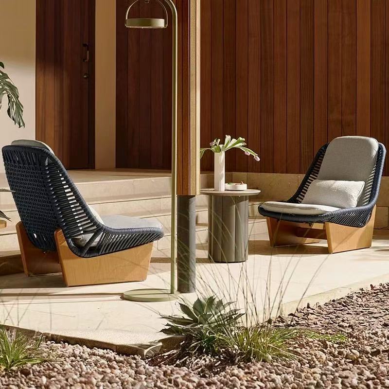 Outdoor Rattan and Teak Sofa Set Designer Style for Garden Balcony and Luxury Villa Waterproof Sun Resistant Ideal for Hotel and Homestay