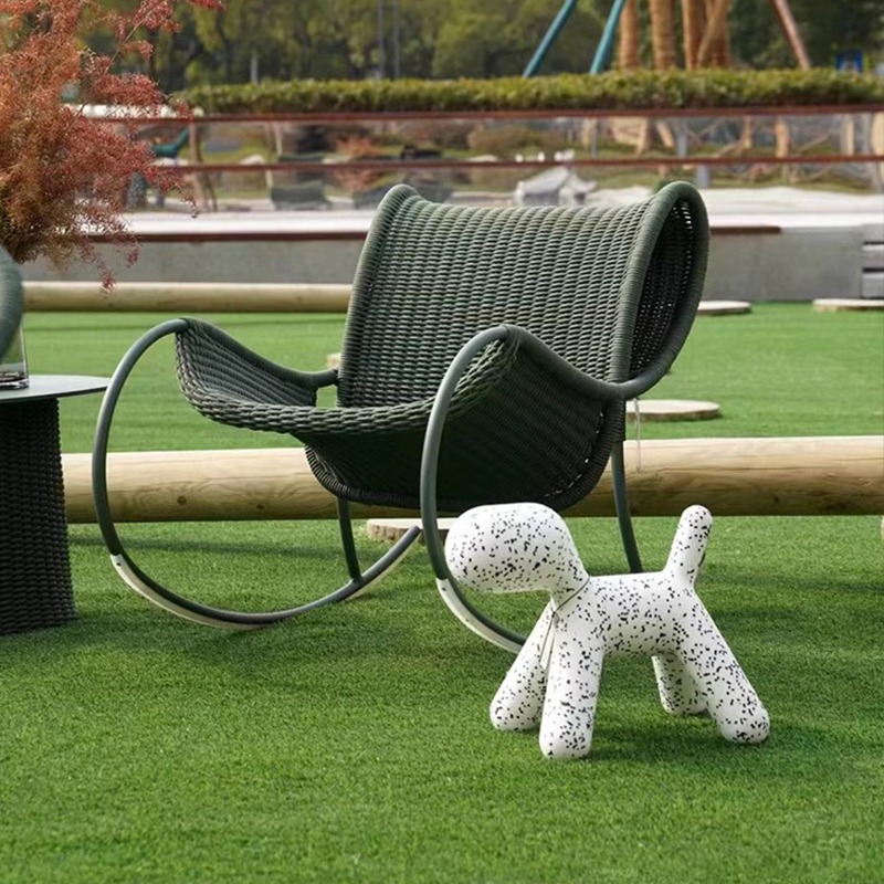 Outdoor Rattan Sofa and Chair Set with Rocking Chair and Coffee Table for Garden Balcony and Villa Waterproof Sun Resistant Ideal for Hotel
