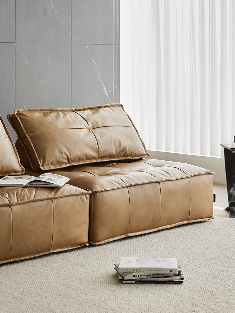 Bunise Genuine Leather Sofa, Tofu Block Shape, Modular Style, Single Chair That Can Be Assembled. Leather Color Can Be Chosen. Suitable for Living Rooms and Small Condos