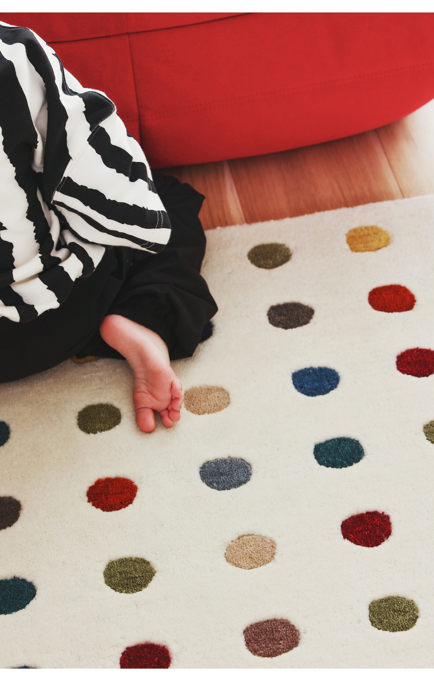Instant happiness boost! 🌈 The polka dots are so cheerful and the faux cashmere is incredibly soft. My kids love rolling around on it during reading time. Washes perfectly too!