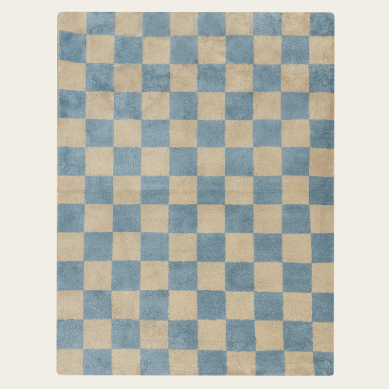 Carpet Living Room Blue check hand-made carpet Bed Room Sofa Coffee Table Rug Short wool bedchamber Decor Carpet